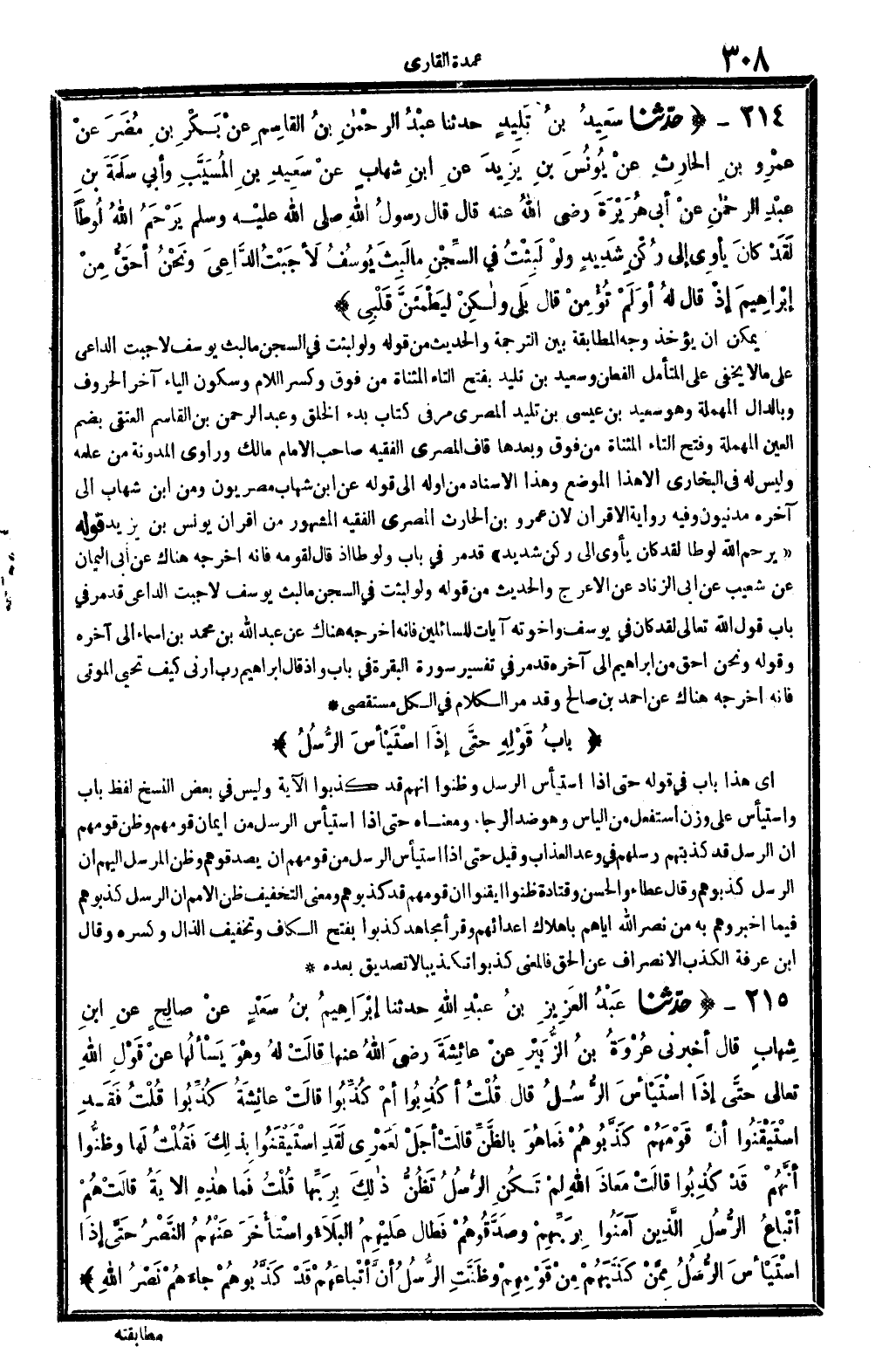 - (بابُ قَوْلِهِ: {حتَّى إذَا اسْتَيْأسَ الرُّسُلُ} (يُوسُف: 110) 2.