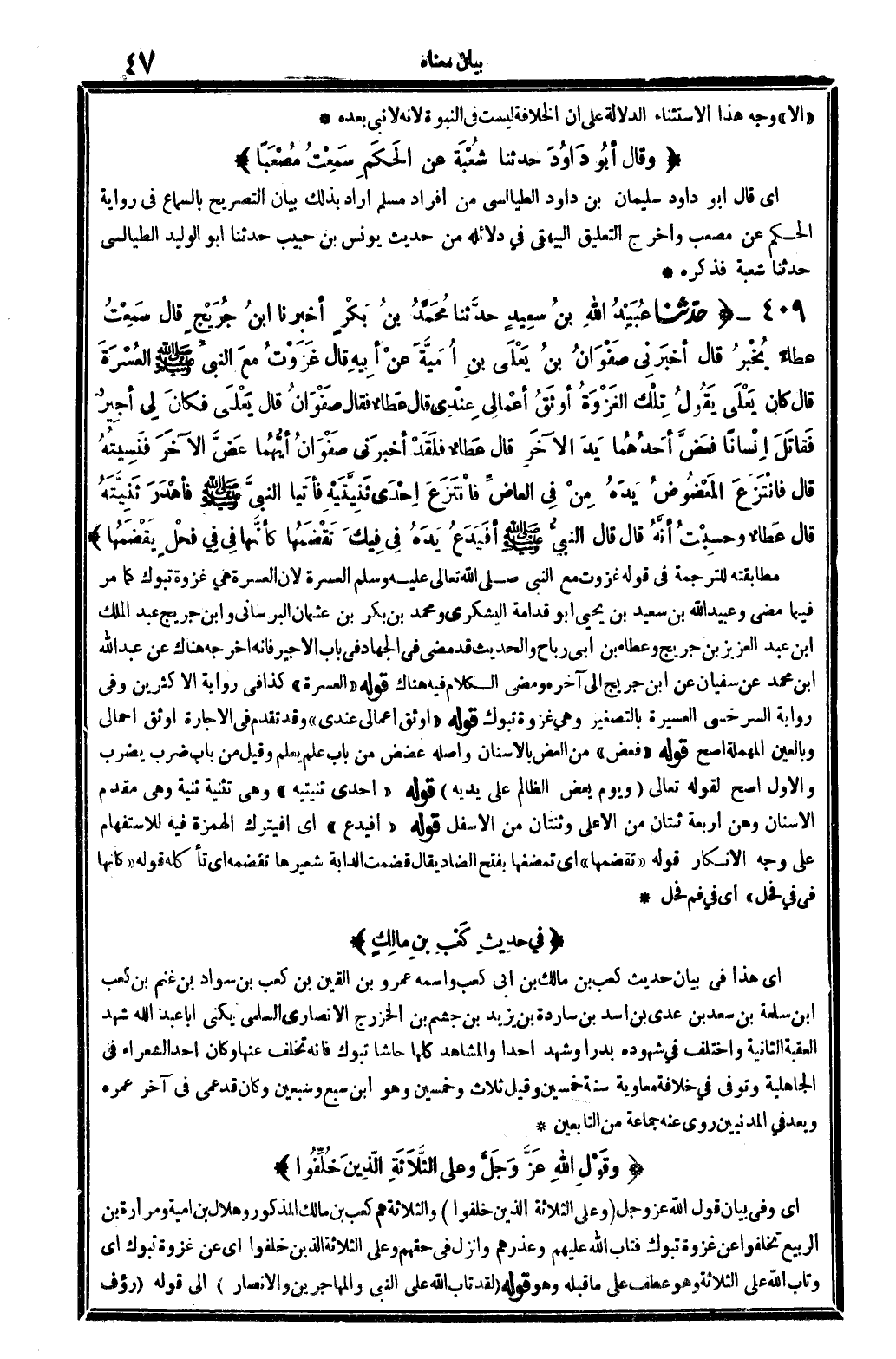 وقَوْلِ الله عَزَّ وجَلَّ: {وعَلى الثَّلاَثَةِ الَّذِينَ خُلِّفُوا} (التَّوْبَة: 118) .