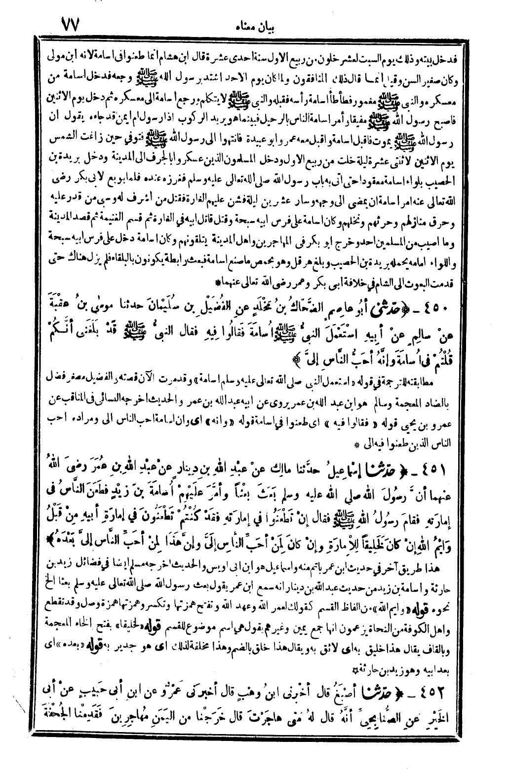 4468 - ح دَّثني أبُو عاصِمٍ الضَّحّاكُ بنُ مَخْلَدٍ عنِ الفُضَيْلِ بن سُلَيْمانَ حَدثنَا موساى بنُ عقْبَةَ عنْ سالِمٍ عنْ أبِيهِ اسْتَعْمَلَ النبيُّ صلى الله عَلَيْهِ وَسلم أُسامَةَ فَقَالُوا فِيهِ فَقَالَ النبيُّ صلى الله عَلَيْهِ وَسلم قَدْ بَلَغَنِي أنَّكُمْ قُلْتُمْ فِي أُسامَةَ وإنَّهُ أحَبُّ النَّاسِ إليَّ. .