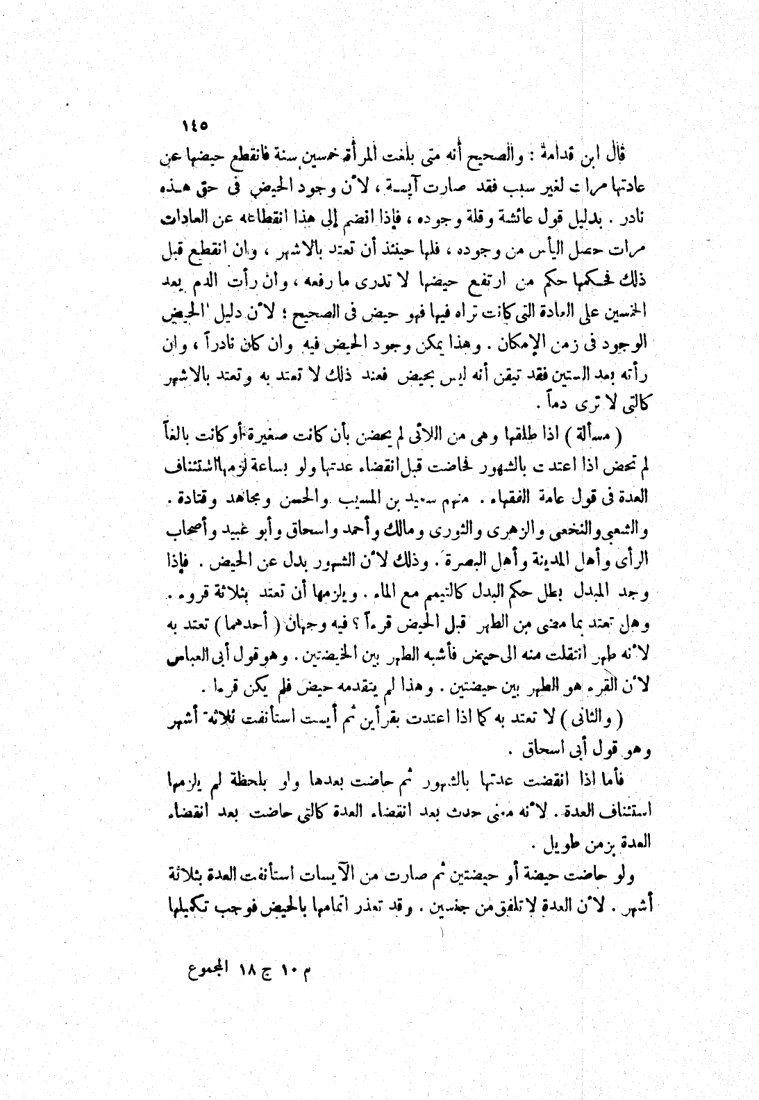 قال ابن قدامة: والصحيح أنه متى بلغت المرأة خمسين سنة فانقطع حيضها عن عادتها مرات لغير سبب فقد صارت آيسة، لان وجود الحيض في حق هذه نادر.