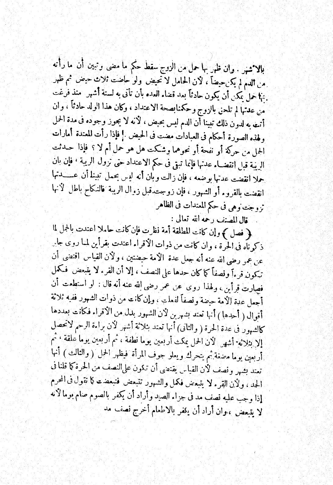 وان ظهر بها حمل من الزوج سقط حكم ما مضى وتبين أن ما رأته من الدم لم يكن حيضا، لان الحامل لا تحيض ولو حاضت بثلاثة حيض ثم ظهر بها حمل يمكن أن يكون حادثا بعد قضاء العده بأن تأتى به لستة أشهر منذ فرغت من عدتها لم تحلق بالزوج وحكمنا بصحة الاعتداد، وكان هذا الولد حادثا، وان أتت به لدون ذلك تبينا أن الدم ليس بحيض، لانه لا يجوز وجوده في مدة الحمل ولهذا الصورة أحكام في العبادات مضت في الحيض.
