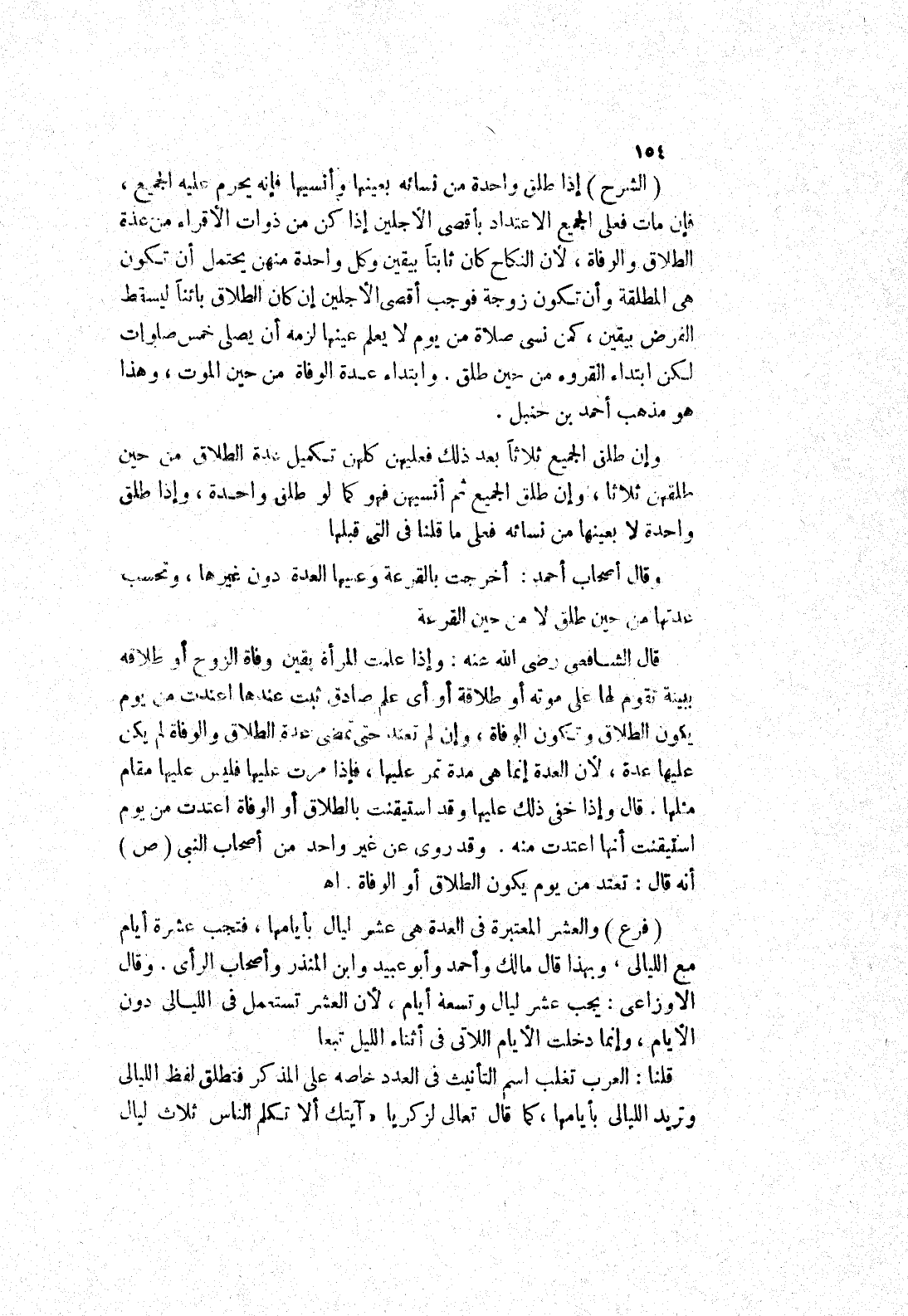والعشر المعتبرة في العدة هي عشر ليال بأيامها، فتجب عشرة أيام مع الليالى، وبهذا قال مالك وأحمد وأبو عبيد وابن المنذر وأصحاب الرأى.