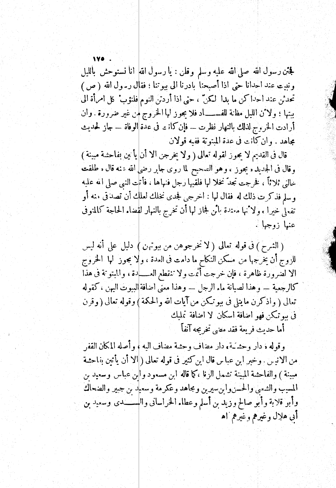 وخبر ابن عباس قال ابن كثير في قوله تعالى (الا أن يأتين بفاحشة مبينة) والفاحشة المبينة تشمل الزنا، كما قاله ابن مسعود وابن عباس وسعيد بن المسيب والشعبى والحسن وابن سيرين ومجاهد وعكرمة وسعيد بن جبير والضحاك وأبو فلابة وأبو صالح وزيد بن أسلم وعطاء الخراساني والسدى وسعيد بن أبى هلال وغيرهم وغيرهم اه