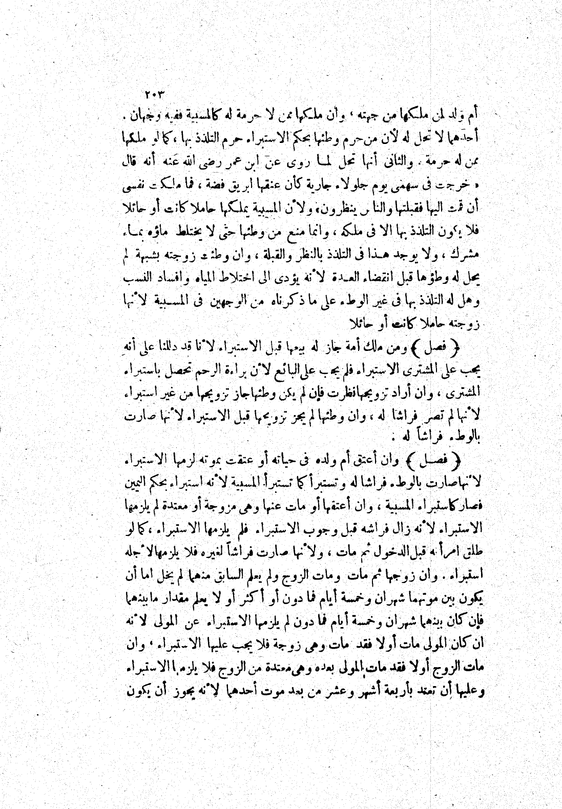 والثانى أنها تحل لما روى عن ابن عمر رضى الله عنه أنه قال " خرجت في سهمي يوم جلولاء جارية كأن عنقها ابريق فضة، فما ملكت نفسي أن قمت إليها فقبلتها والناس ينظرون " ولان المسبية يملكها حاملا كانت أو حائلا فلا يكون التلذذ بها الا في ملكه، وانما منع من وطئها حتى لا يختلط ماؤه بماء مشرك، ولا يوجد هذا في التلذذ بالنظر والقبلة، وان وطئت زوجته بشبهة لم يحل له وطؤها قبل انقضاء العدة لانه يؤدى إلى اختلاط المياه وافساد النسب وهل له التلذذ بها في غير الوطئ على ما ذكرناه من الوجهين في المسبية لانها زوجته حاملا كانت أو حائلا