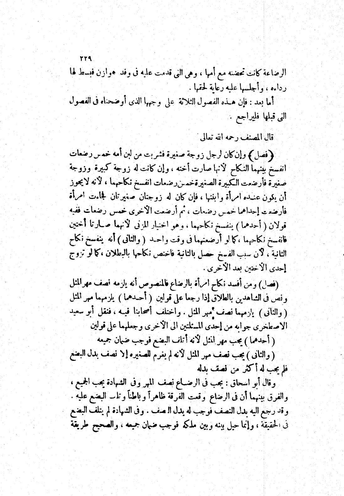 وإن كان لرجل زوجة صغيرة فشربت من لبن أمه خمس رضعات
