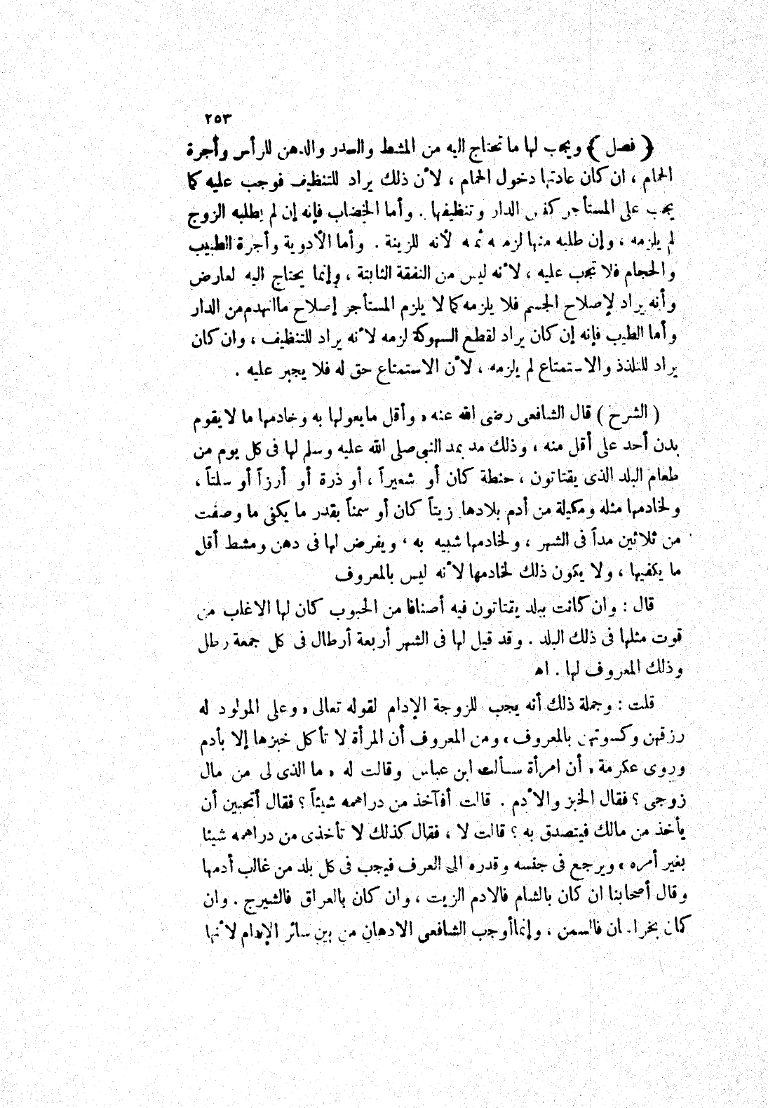 اه قلت: وجملة ذلك أنه يجب للزوجة الادام لقوله تعالى " وعلى المولود له رزقهن وكسوتهن بالمعروف " ومن المعروف أن المرأة لا تأكل خبزها إلا بأدم وروى عكرمة " أن امرأة سألت أبن عباس وقالت له " ما الذي لى من مال زوجي؟ فقال الخبز والادم.