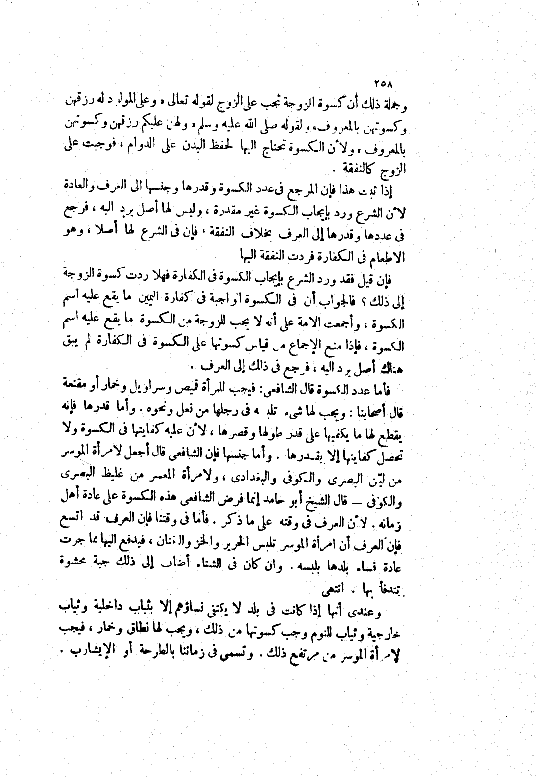 إذا ثبت هذا فإن المرجع في عدد الكسوة وقدرها وجنسها لى العرف والعادة لان الشرع ورد بإيجاب الكسوة غير مقدرة، وليس لها أصل يرد إليه، فرجع في عددها وقدرها إلى العرف بخلاف النفقة، فإن في الشرع لها أصلا، وهو الاطعام في الكفارة فردت النفقة إليها فإن قيل فقد ورد الشرع بإيجاب الكسوة في الكفارة فهلا ردت كسوة الزوجة إلى ذلك؟ فالجواب أن في الكسوة الواجبة في كفارة اليمين ما يقع عليه اسم الكسوة، وأجمعت الامة على أنه لا يجب للزوجة من الكسوة ما يقع عليه اسم الكسوة، فإذا منع الاجماع من قياس كسوتها على الكسوة في الكفارة لم يبق هناك أصل يرد إليه، فرجع في ذلك إلى العرف.