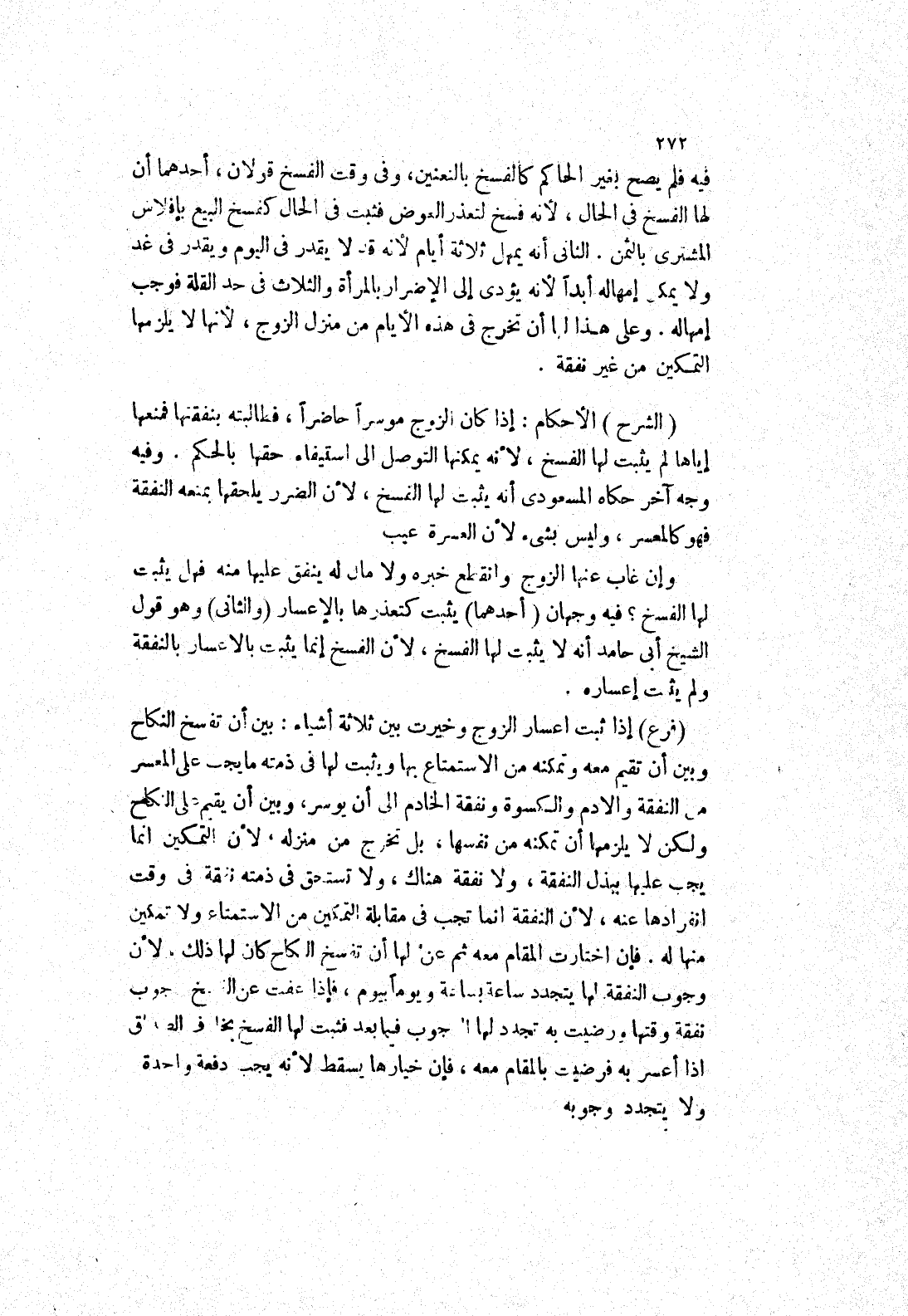 فيه فلم يصح بغير الحاكم كالفسخ بالنعنين، وفي وقت الفسخ قولان، أحدهما أن لها الفسخ في الحال، لانه فسخ لتعذر العوض فثبت في الحال كفسخ البيع بإفلاس المشتري بالثمن.