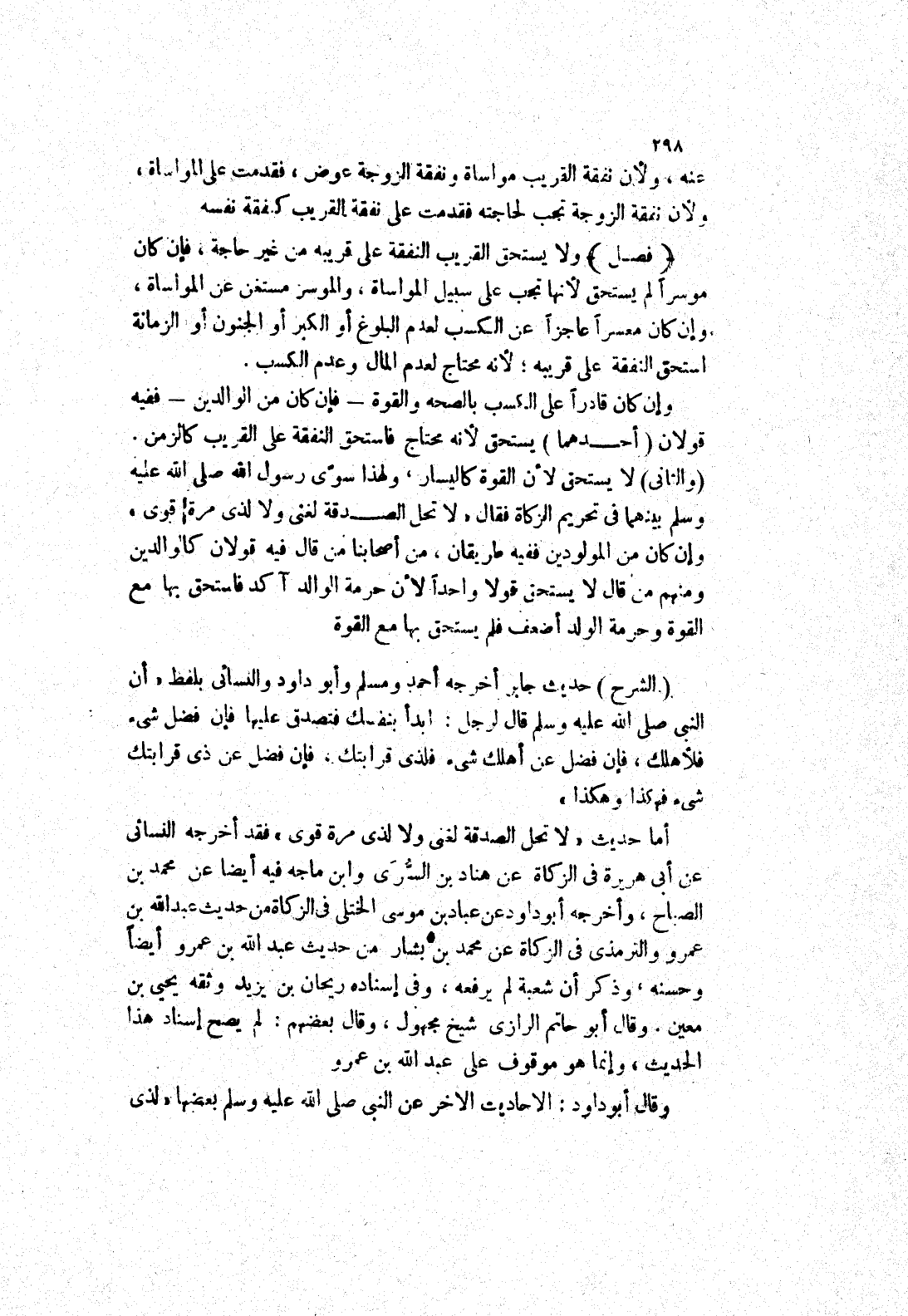 النَّبِيَّ صَلَّى اللَّهُ عَلَيْهِ وَسَلَّمَ قَالَ لرجل: ابدأ بنفسك فتصدق عليها فإن فضل شئ فلاهلك، فإن فضل عن أهلك شئ فلذى قرابتك، فإن فضل عن ذى قرابتك شئ فهكذا وهكذا " أما حديث " لا تحل الصدقة لغنى ولا لذى مرة قوى " فقد أخرجه النسائي عن أبى هريرة في الزكاة عن هناد بن السرى وابن ماجه فيه أيضا عن محمد بن الصباح، وأخرجه أبو داود عن عباس بن موسى الختلى في الزكاة من حديث عبد الله بن عمرو والترمذي في الزكاة عن محمد بن بشار من حديث عبد الله بن عمرو أيضا وحسنه، وذكر أن شعبة لم يرفعه، وفي إسناده ريحان بن يزيد وثقه يحيى بن معين.