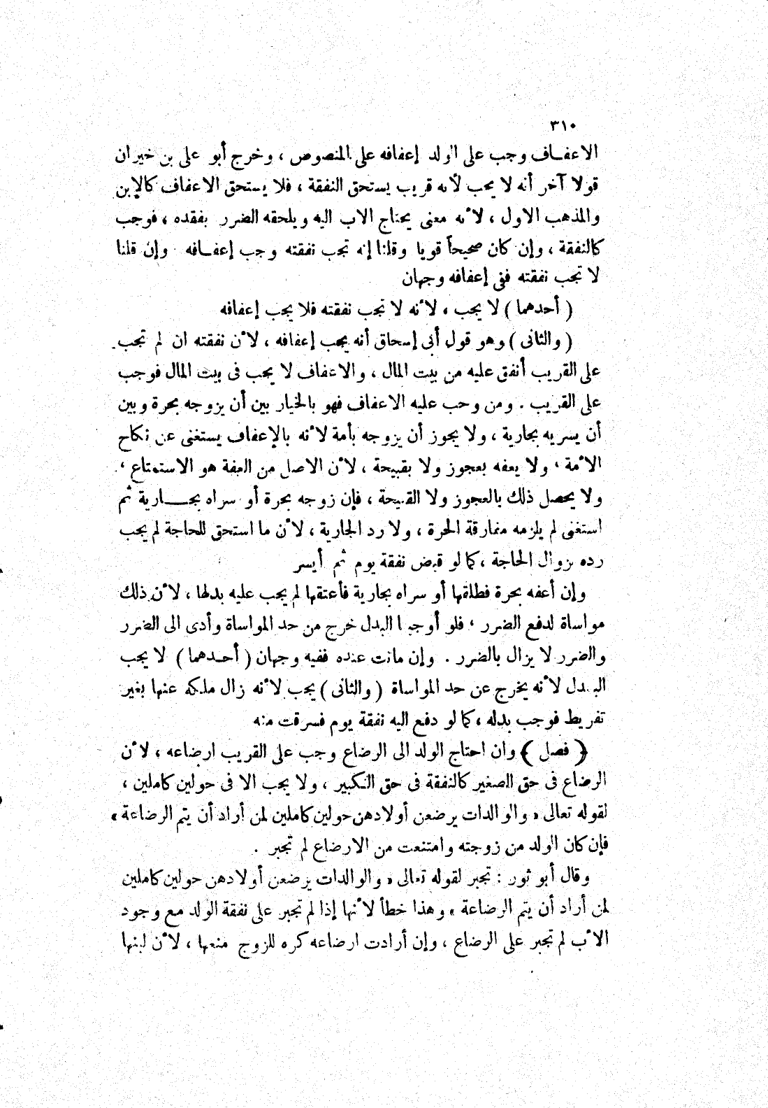 وان احتاج الولد إلى الرضاع وجب على القريب ارضاعه، لان الرضاع في حق الصغير كالنفقة في حق الكبير، ولا يجب الا في حولين كاملين، لقول تعالى " والولدات يرضعن أولادهن حولين كاملين لمن أراد أن يتم الرضاعة " فإن كان الولد من زوجته وامتنعت من الارضاع لم تجبر.