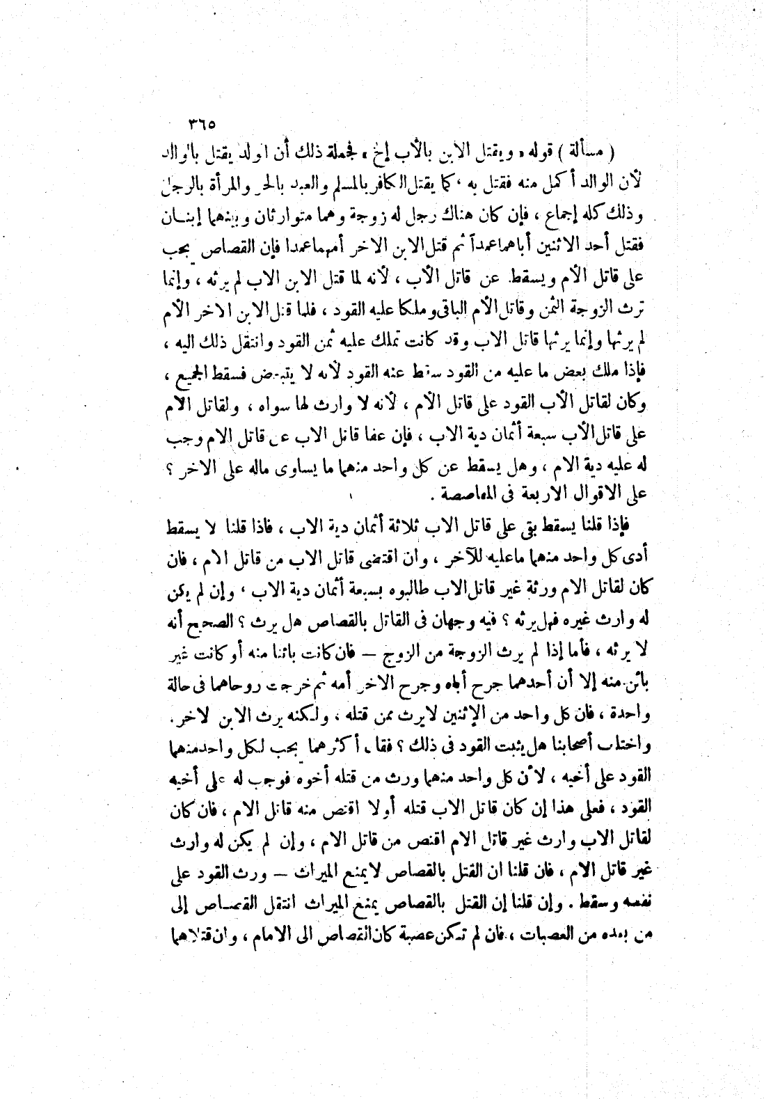 واختلف أصحابنا هل يثبت القود في ذلك؟ فقال أكثرهما يجب لكل واحد منهما القود على أخيه، لان كل واحد منهما ورث من قتله أخوة فوجب له على أخيه القود، فعلى هذا إن كان قاتل الاب قتله أولا أقتص منه قاتل الام، فان كان لقاتل الاب وراث غير قاتل الام اقتص من قاتل الام، وإن لم يكن له وارث غير قاتل الام، فان قلنا ان القتل بالقصاص لايمنع الميراث - ورث القود على نفسه وسقط.