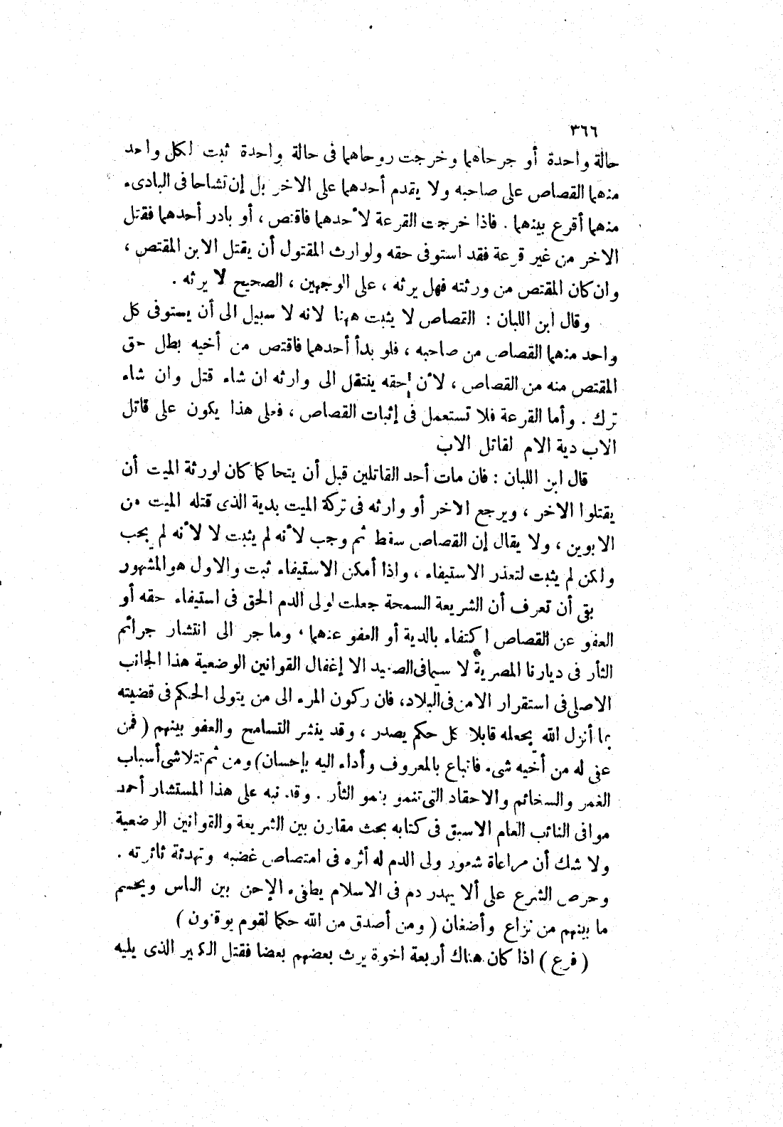 وحرص الشرع على ألا يهدر دم في الاسلام يطفئ الاحن بين الناس ويحسم ما بينهم من نزاع وأضغان (ومن أصدق من الله حكما لقوم يوقنون) (فرع)
