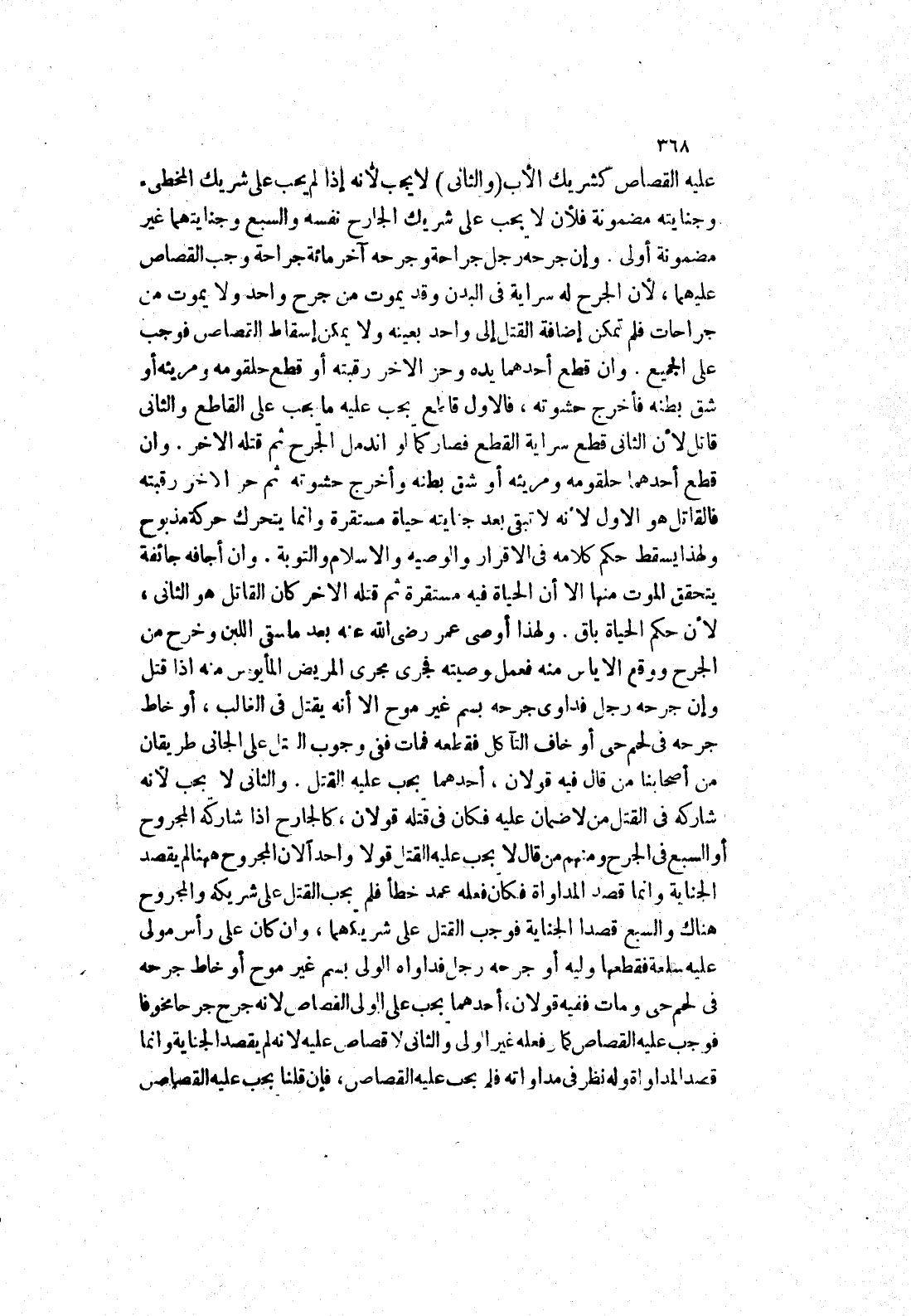 شاركه في القتل من لا ضمان عليه فكان في قتله قولان، كالجارح إذا شاركه المجروح أو السبع في الجرح ومنهم من قال لا يجب عليه القتل قولا واحدا لان المجروح ههنا لم يقصد الجناية وانما قصد المداواة فكان فعله عمد خطأ فلم يجب القتل على شريكه والمجروح هناك والسبع وقصدا الجناية فوجب القتل على شريكهما، وان كان على رأس مولى عليه سلعة فقطعها وليه أو جرحه رجل فداواه الولى بسم غير موح أو خاط جرحه في لحم حى ومات ففيه قولان، أحدهما يجب على الولى القصاص لانه جرح جرحا مخوفا فوجب عليه القصاص كما وفعله غير الولى والثانى لا قصاص عليه لانه لم يقصد الجناية وانما قصد المداواة وله في نظر مداواته فلم يجب عليه القصاص، فإن قلنا يجب عليه القصاص