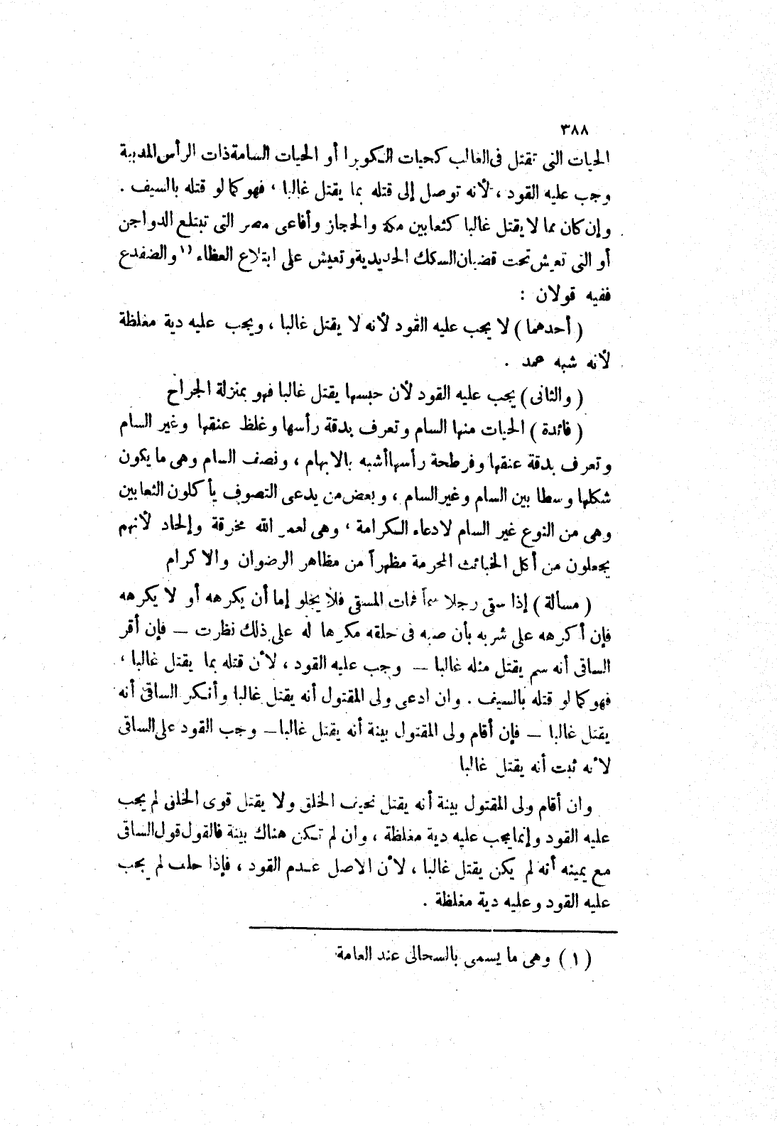 وإن كان مما لا يقتل غالبا كثعابين مكة والحجاز وأفاعي مصر التي تبتلع الدواجن أو التي تعيش تحتت قضبان السكك الحديدة وتعيش على ابتلاع العظاء (1) والضفدع ففيه قولان: