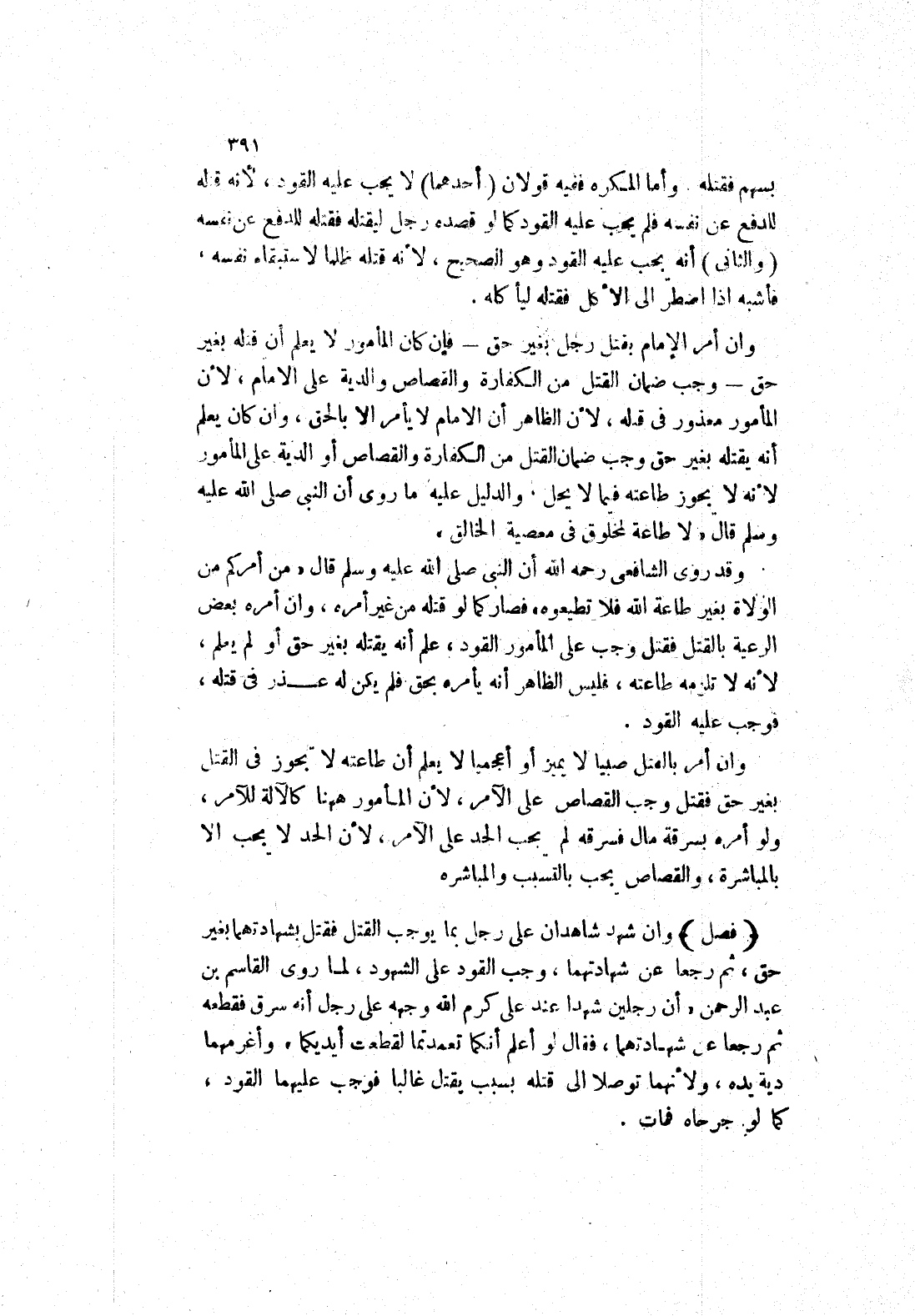 وأن أمر الامام بقتل رجل بغير حق - فإن كان المأمور لا يعلم أن قتله بغير حق - وجب ضمان القتل من الكفارة والقصاص والدية على الامام، لان المأمور معذور في قتله، لان الظاهر أن الامام لا يأمر الا بالحق.