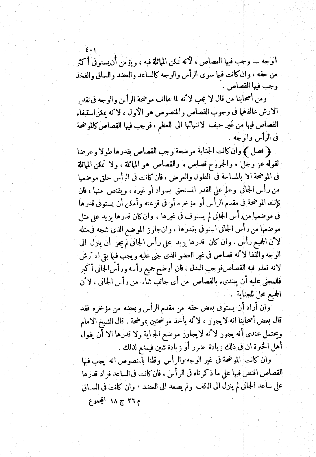 الوجه - وجب فيها القصاص، لانه تمكن المماثلة فيه، ويؤمن أن يستوفى أكثر من حقه، وان كانت فيما سوى الرأس والوجه كالساعد والعضد والساق والفخذ وجب فيها القصاص.