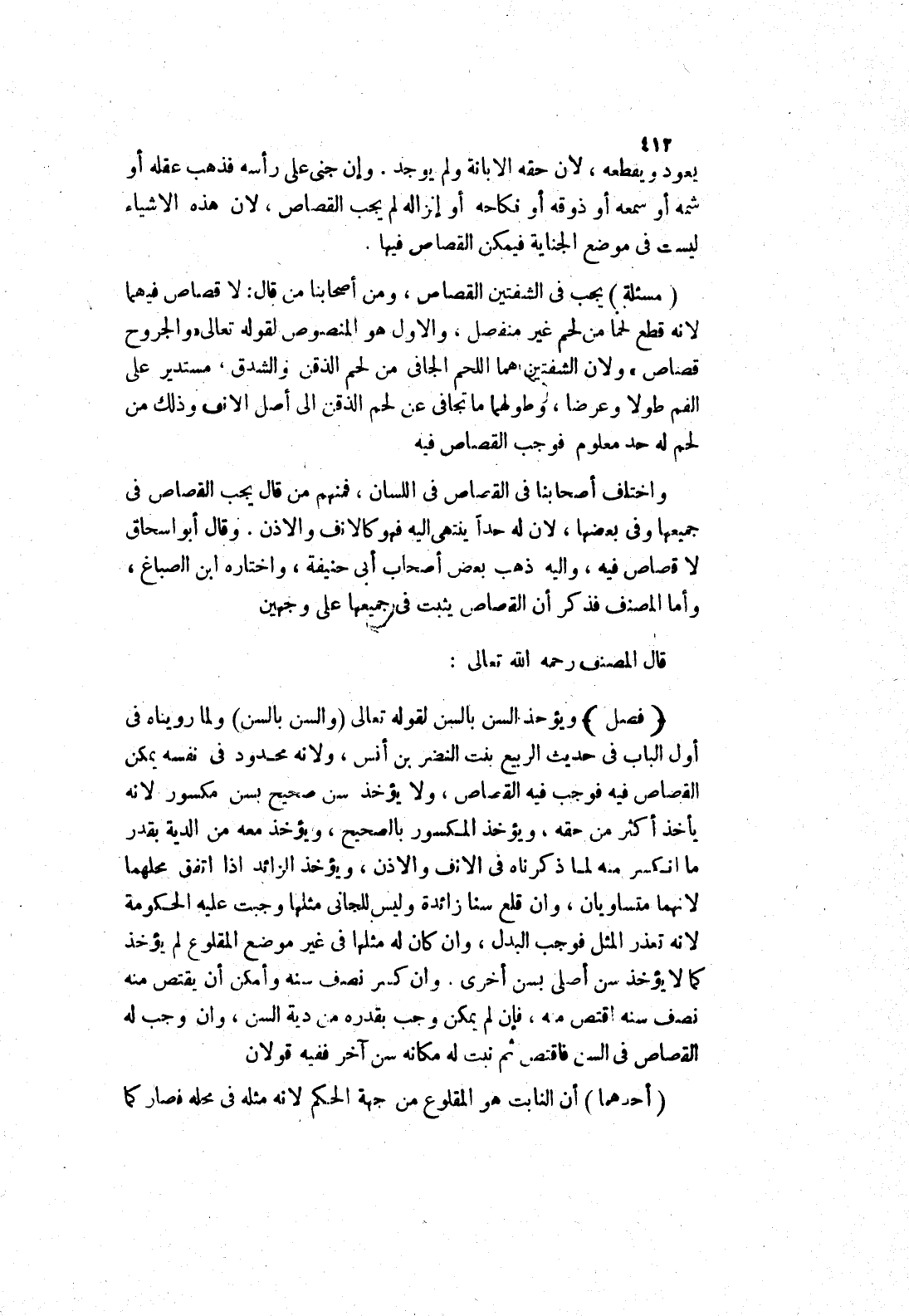 وقال أبو إسحاق لاقصاص فيه، واليه ذهب بعض أصحاب أبى حنيفة، واختاره ابن الصباغ وأما المصنف فذكر أن القصاص يثبت في جميعها على وجهين