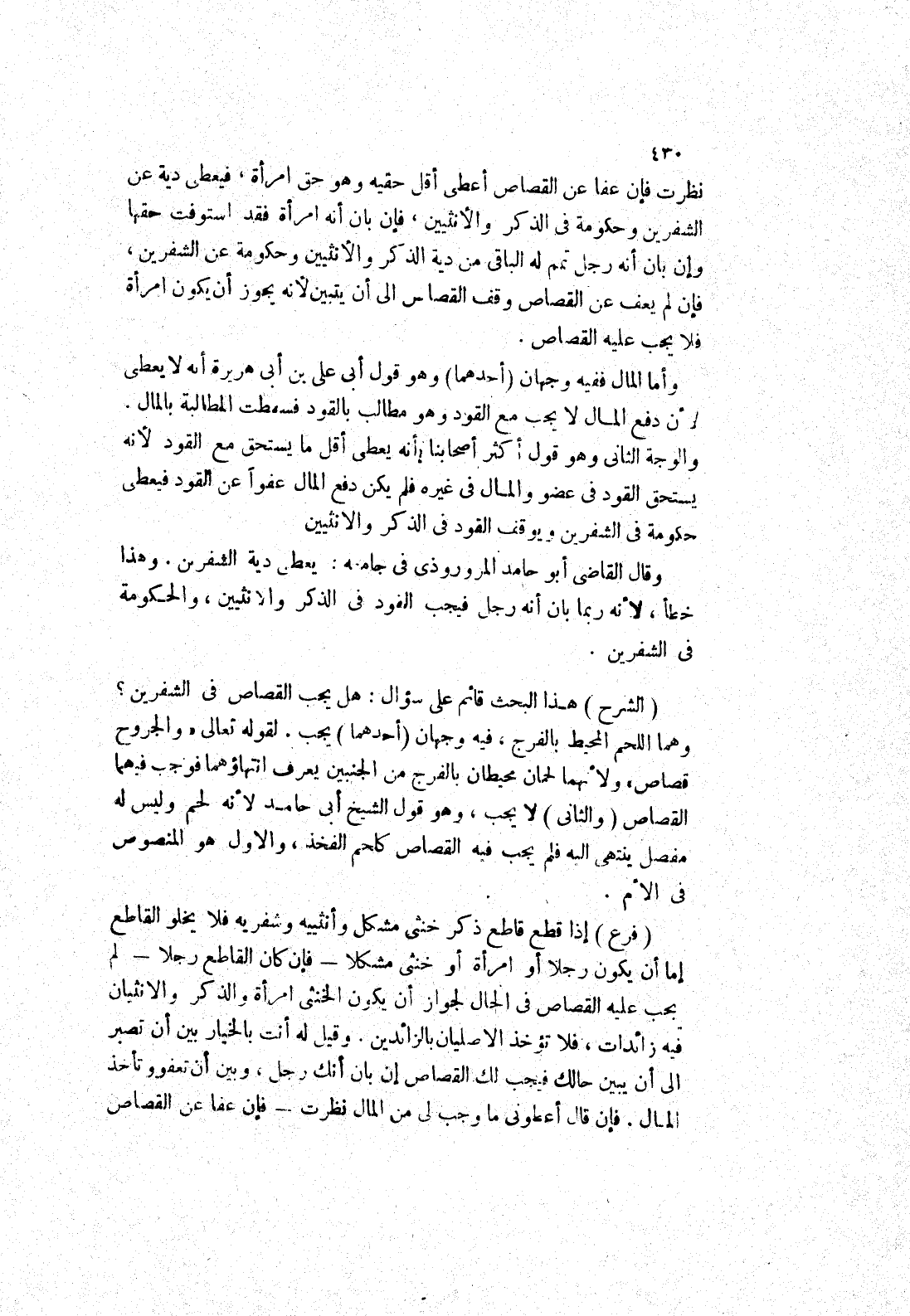 (الشرح) هذا البحث قائم على سؤال: هل يجب القصاص في الشفرين؟ وهما اللحم المحيط بالفرج، فيه وجهان