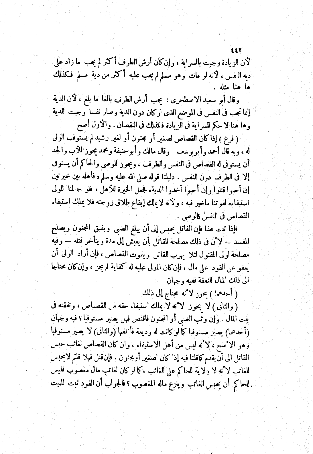 إذا كان القصاص لصغير أو مجنون أو لغير رشيد لم يستوف الولى له، وبه قال أحمد وأبو يوسف وقال مالك وأبو حنيفة ومحمد يجوز للاب والجد أن يستوفى له القصاص في النفس والطرف، ويجوز للوصي والحاكم أن يستوفى إلا في الطرف دون النفس.
