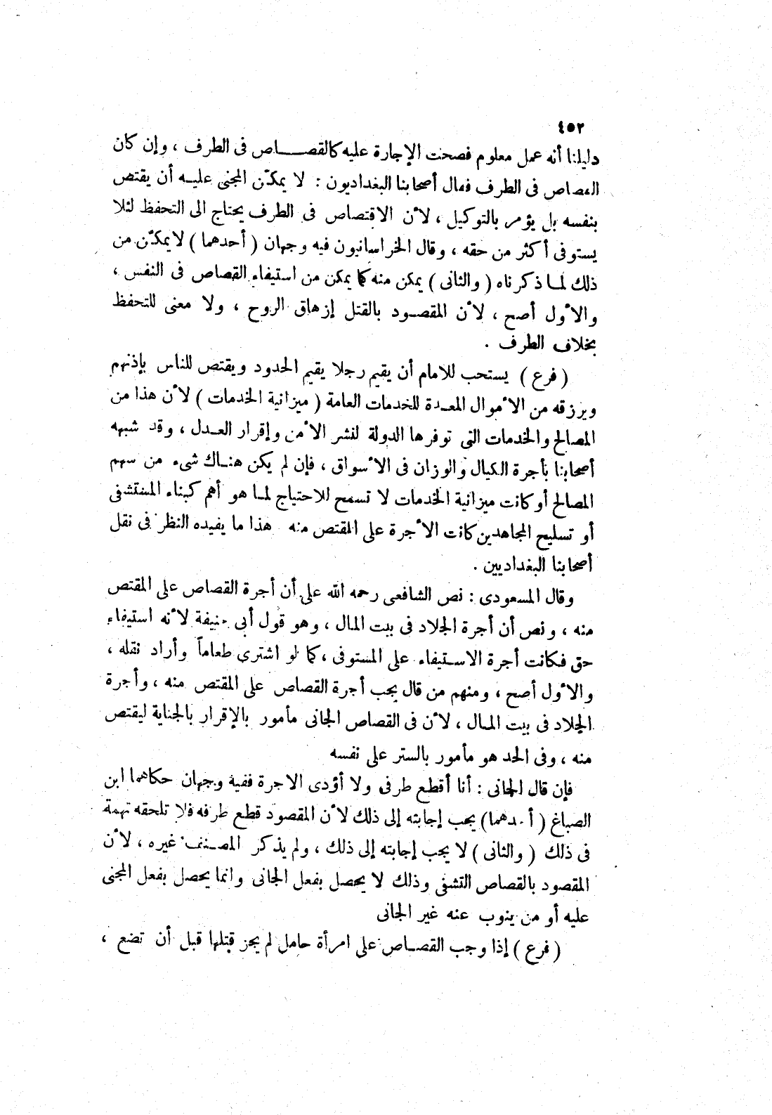 أصحابنا بأجرة الكيال والوزان في الاسواق، فإن لم يكن هناك شئ من سهم المصالح أو كانت ميزانية الخدمات لا تسمح للاحتياج لما هو أهم كبناء المستشفى أو تسليح المجاهدين كانت الاجرة على المقتص منه هذا ما يفيده النظر في نقل أصحابنا البغداديين.