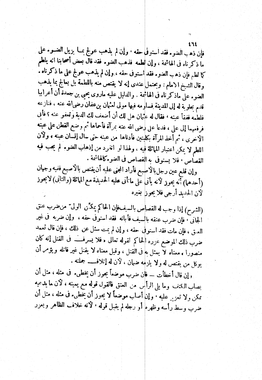 وقال الشيخ الامام: ويحتمل عندي إنه لايقتص منه باللطمة بل يعالج بما يذهب