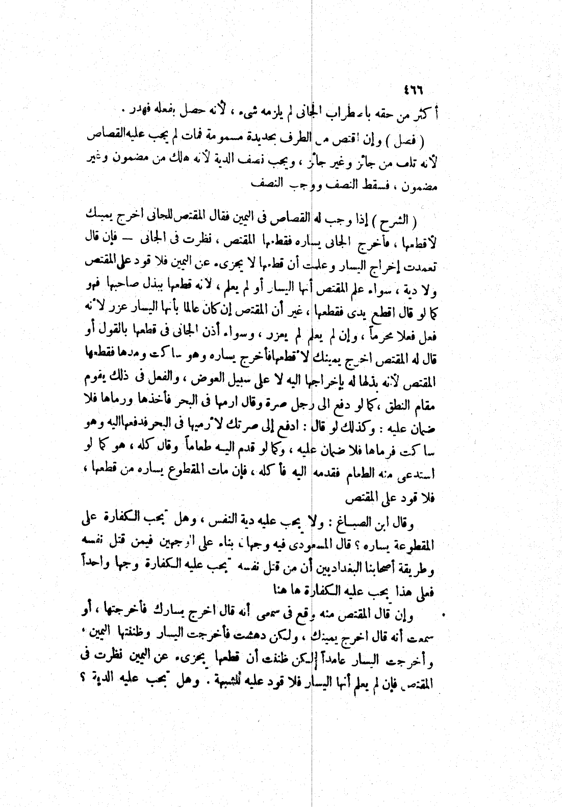 وإن اقتص من الطرف بحديدة مسمومة فمات لم يجب عليه القصاص لانه تلف من جائز وغير جائز، ويجب نصف الدية لانه هلك من مضمون وغير مضمون، فسقط النصف ووجب النصف (الشرح) إذا وجب له القصاص في اليمين فقال المقتص للجاني أخرج يمينك لاقطعها، فأخرج الجاني يساره فقطعها المقتص، نظرت في الجاني - فإن قال تعمدت إخراج اليسار وعلمت أن قطعها لا يجزئ عن اليمين فلا قود على المقتص ولادية، سواء علم المقتص أنها اليسار أو لم يعلم، لانه قطعها ببذل صاحبها فهو كما لو قال اقطع يدى فقطها، غير أن المقتص إن كان عالما بأنها اليسار عزر لانه فعل فعل محرما، وإن لم يعلم لم يعزر، وسواء أذن الجاني في قطعها بالقول أو قال له المقتص اخرج يمينك لاقطعها فأخرج يساره وهو ساكت ومدها فقطعها المقتص لانه بذلها له بإخراجها إليه لا على سبيل العوض، والفعل في ذلك يقوم مقام النطق، كما لو دفع إلى رجل صرة وقال ارمها في البحر فأخذها ورماها فلا ضمان عليه: وكذلك لو قال: ادفع إلى صرتك لارميها في البحر فدفعها إليه وهو ساكت فرماها فلا ضمان عليه، وكما لو قدم إليه طعاما وقال كله، هو كما لو استدعى منه الطعام فقدمه إليه فأكله، فإن مات المقطوع يساره من قطعها، فلا قود على المقتص وقال ابن الصباغ: ولا يجب عليه دية النفس، وهل تجب الكفارة على المقطوعة يساره؟ قال المسعودي فيه وجهان بناء على الوجهين فيمن قتل نفسه
