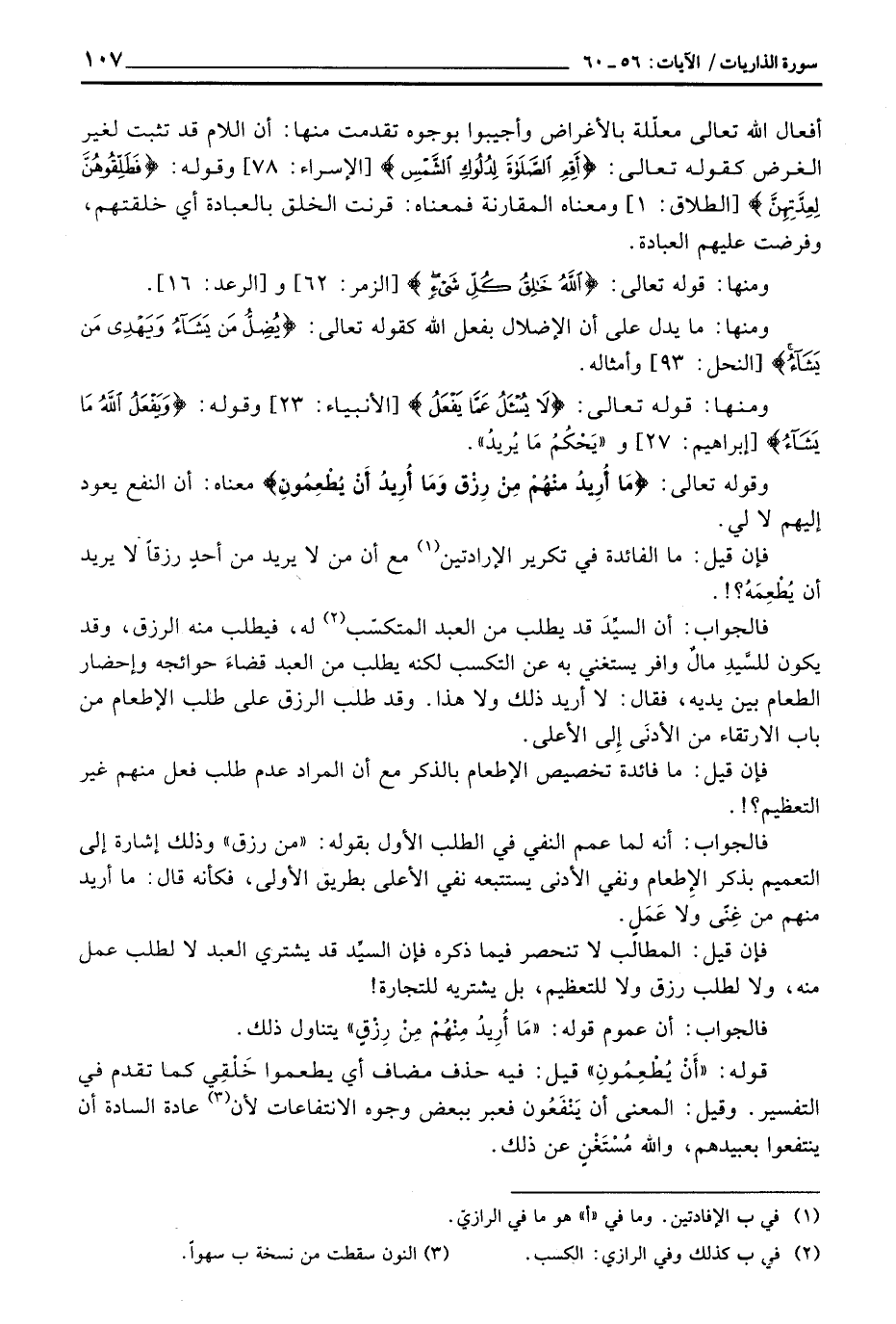 قوله: «أَنْ يُطْعِمُونِ» قيل: فيه حذف مضاف أي يطعموا خَلْقِي كما تقدم في التفسير. وقيل: المعنى أن يَنْفَعُون فعبر ببعض وجوه الانتفاعات لأن عادة السادة أن ينتفعوا بعبيدهم، والله مُسْتَغْنٍ عن ذلك.