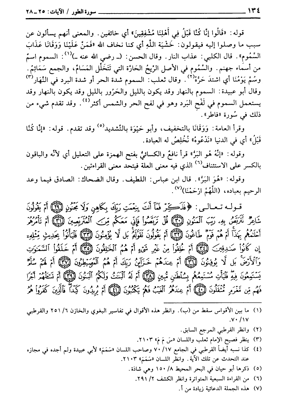 قوله: {قالوا إِنَّا كُنَّا قَبْلُ في أَهْلِنَا مُشْفِقِينَ} أي خائفين. والمعنى أنهم يسألون عن سبب ما وصلوا إليه فيقولون: خَشْيَة اللَّهِ أي كنا نخاف الله «فَمَنَّ عَلَيْنَا وَوَقَانَا عَذَابَ السَّمُومِ» . قال الكلبي: عذاب النار. وقال الحسن: (- رَضِيَ اللَّهُ عَنْه -) : السموم اسمٌ من أسماء جهنم. والسَّمُوم في الأصل الرِّيحُ الحَارَّة التي تَتَخَلَّل المَسَامَّ، والجمع سَمَائِمُ. وسُمَّ يَوْمُنَا أي اشتدَ حَرُّهُ. وقال ثعلب: السموم شدة الحر أو شدة البرد في النَّهَار وقال أبو عبيدة: السموم بالنهار وقد يكون بالليل والحَرُور بالليل وقد يكون بالنهار وقد يستعمل السموم في لَفْحِ البَرد وهو في لفح الحر والشمس أكثر. وقد تقدم شيء من ذلك في سُورة «فاطر» .