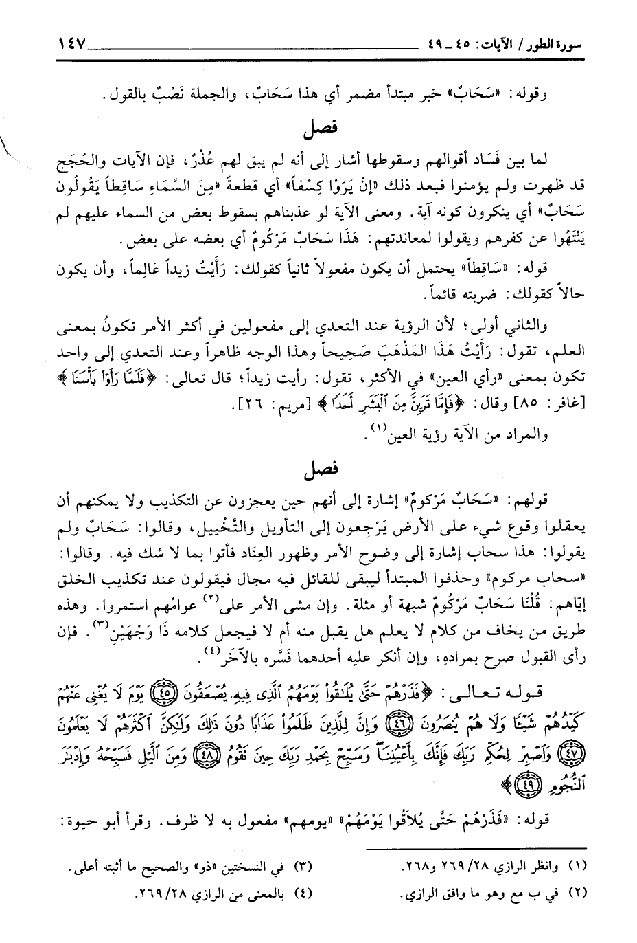 والثاني أولى؛ لأن الرؤية عند التعدي إلى مفعولين في أكثر الأمر تكونُ بمعنى العلم، تقول: رَأَيْتُ هَذَا المَذْهَبَ صَحِيحاً وهذا الوجه ظاهراً وعند التعدي إلى واحد تكون بمعنى «رأي العين» في الأكثر، تقول: رأيت زيداً؛ قال تعالى: {فَلَمَّا رَأَوْاْ بَأْسَنَا} [غافر: 84] وقال: {فَإِمَّا تَرَيِنَّ مِنَ البشر أَحَداً} [مريم: 26] .