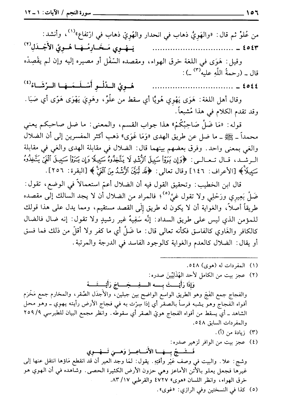 وقيل: هَوَى في اللغة خرق الهواء، ومقصده السّفْل أو مصيره إليه وإن لم يقْصِدْه قال - (رحمةُ اللَّهِ عليه -) :