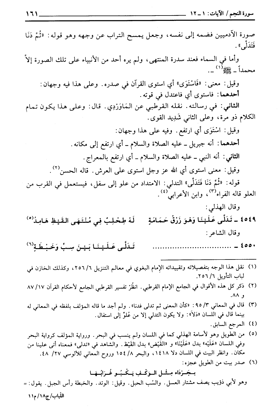 قوله: {ثُمَّ دَنَا فتدلى} التدلي: الامتداد من علو إلى سفل، فيستعمل في القرب من العلو قاله الفراء، وابن الأعرابي.