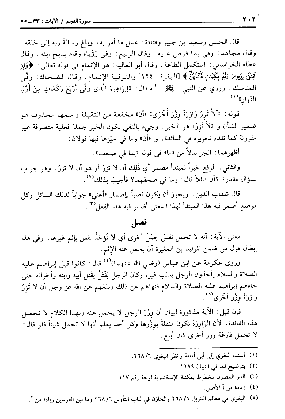 والثاني: الرفع خبراً لمبتدأ مضمر أي ذَلِك أن لا تزرُ أو هو أن لا تزرُ. وهو جواب لسؤال مقدر؛ كأن قائلاً قال: وما في صحفهما؟ فأجيبَ بذلك.