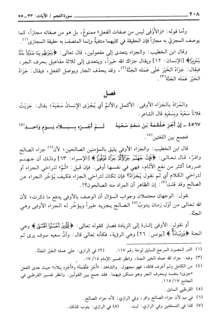 وأما قوله: «وَالأَوْفَى ليس من صفات الفعل» ممنوعٌ، بل هو من صفاته مجازاً، كما يوصف المجزيّ به مجازاً فإن الحقيقة في كليها منتفيةٌ وإنما المتصف به حقيقة المجازى.