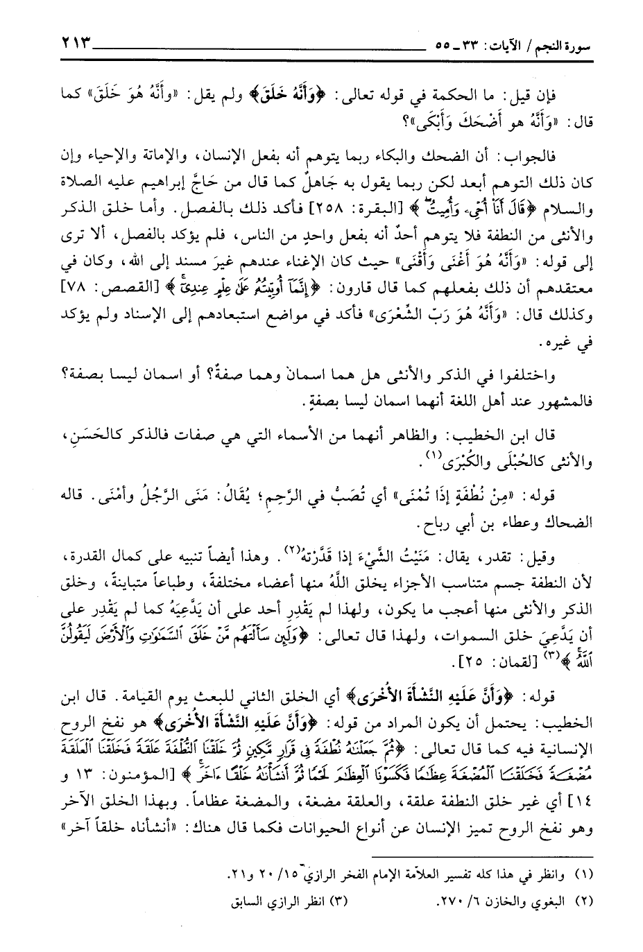 فإن قيل: ما الحكمة في قوله تعالى: {وَأَنَّهُ خَلَقَ} ولم يقل: «وأَنَّهُ هُوَ خَلَقَ» كما قال: {وَأَنَّهُ هُوَ أَضْحَكَ وأبكى} ؟