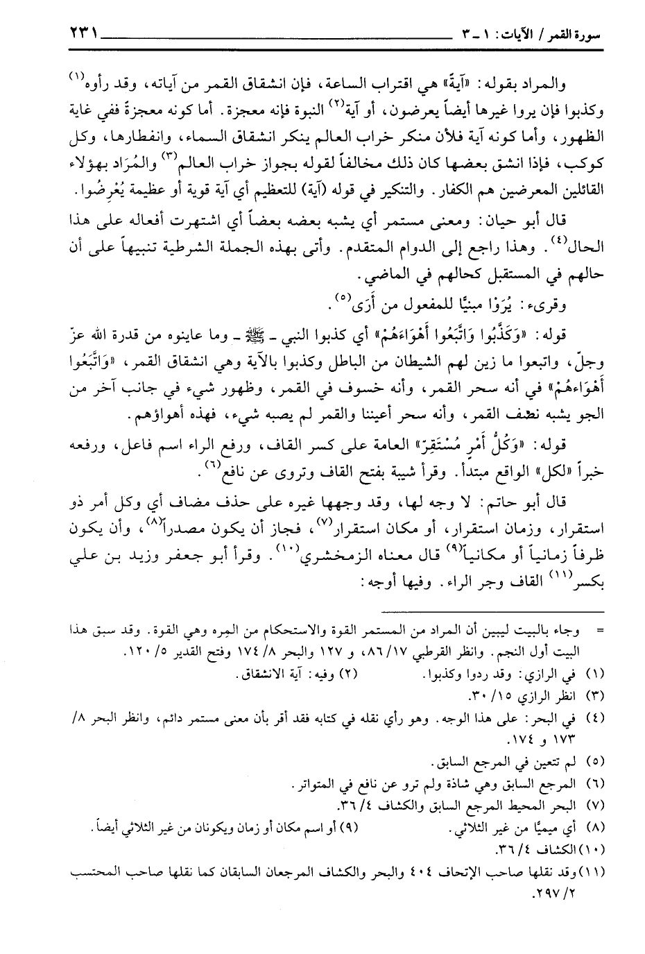 قوله: {وَكُلُّ أَمْرٍ مُّسْتَقِرٌّ} العامة على كسر القاف، ورفع الراء اسم فاعل، ورفعه خبراً «لكل» الواقع مبتدأ. وقرأ شيبة بفتح القاف وتروى عن نافع.