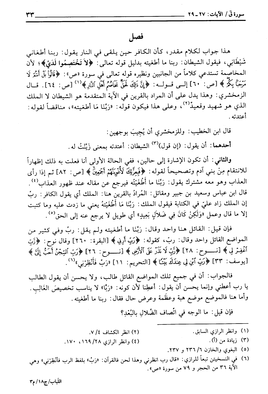 فإن قيل: القائل هنا واحد وقال: رَبَّنَا ما أطغيته ولم يقل: ربِّ وفي كثير من المواضع القائل واحد وقال: ربّ، كقوله: {رَبِّ أَرِنِي} [البقرة: 260] وقال نوح: {رَّبِّ اغفر لِي} [نوح: 28] {رَّبِّ لاَ تَذَرْ عَلَى الأرض} [نوح: 26] {رَبِّ السجن أَحَبُّ إِلَيَّ} [يوسف: 33] {رَبِّ ابن لِي عِندَكَ بَيْتاً} [التحريم: 11] «رَبِّ فَأَنْظِرْنِي» .