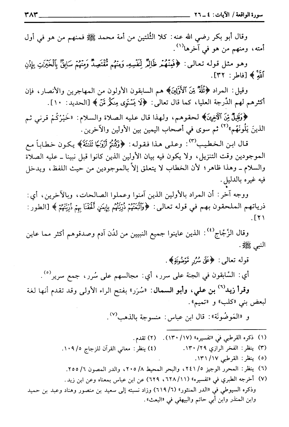 وقال أبو بكر رَضِيَ اللَّهُ عَنْه: كلا الثُّلتين من أمة محمد صَلَّى اللَّهُ عَلَيْهِ وَسَلَّم َ فمنهم من هو في أول أمته، ومنهم من هو في آخرها.