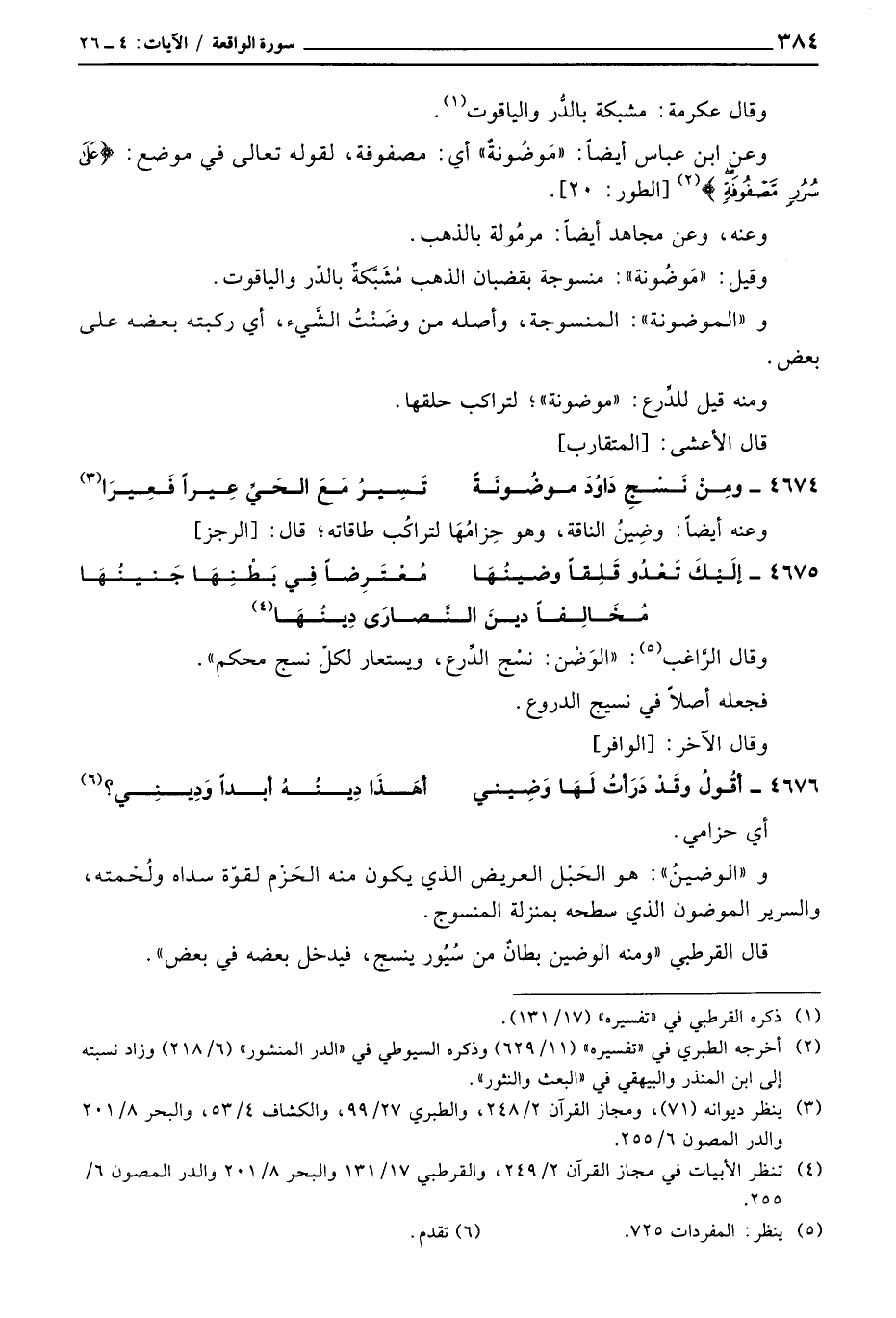 و «الموضونة» : المنسوجة، وأصله من وضَنْتُ الشَّيء، أي ركبته بعضه على بعض.