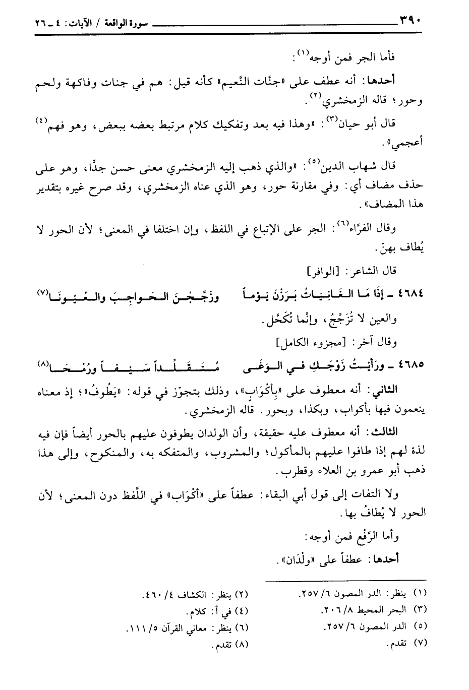 الثاني: أنه معطوف على «بِأكْوَابٍ» ، وذلك بتجوّز في قوله: «يَطُوفُ» ؛ إذ معناه ينعمون فيها بأكواب، وبكذا، وبحور. قاله الزمخشري.