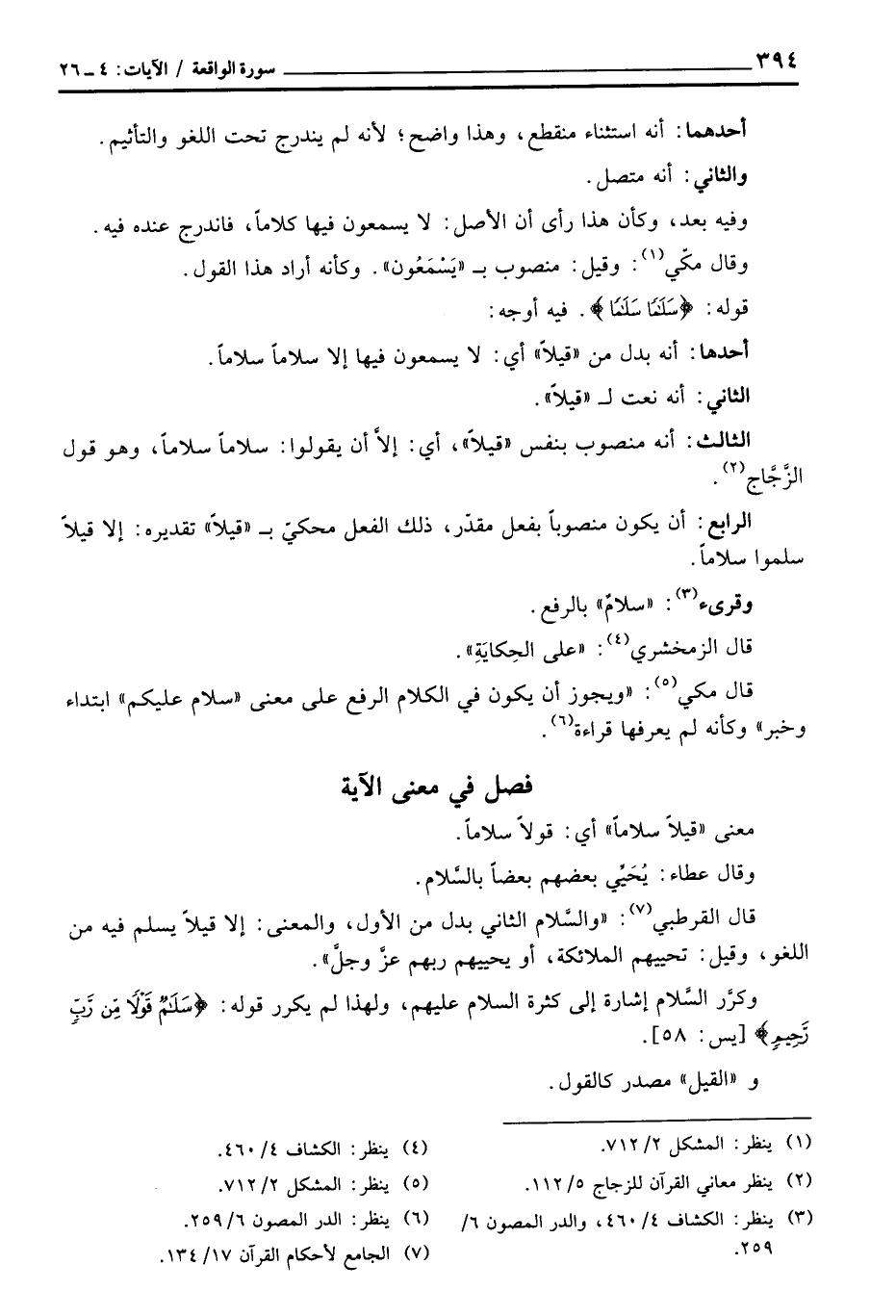 قال القرطبي: «والسَّلام الثاني بدل من الأول، والمعنى: إلا قيلاً يسلم فيه من اللغو، وقيل: تحييهم الملائكة، أو يحييهم ربهم عزَّ وجلَّ» .