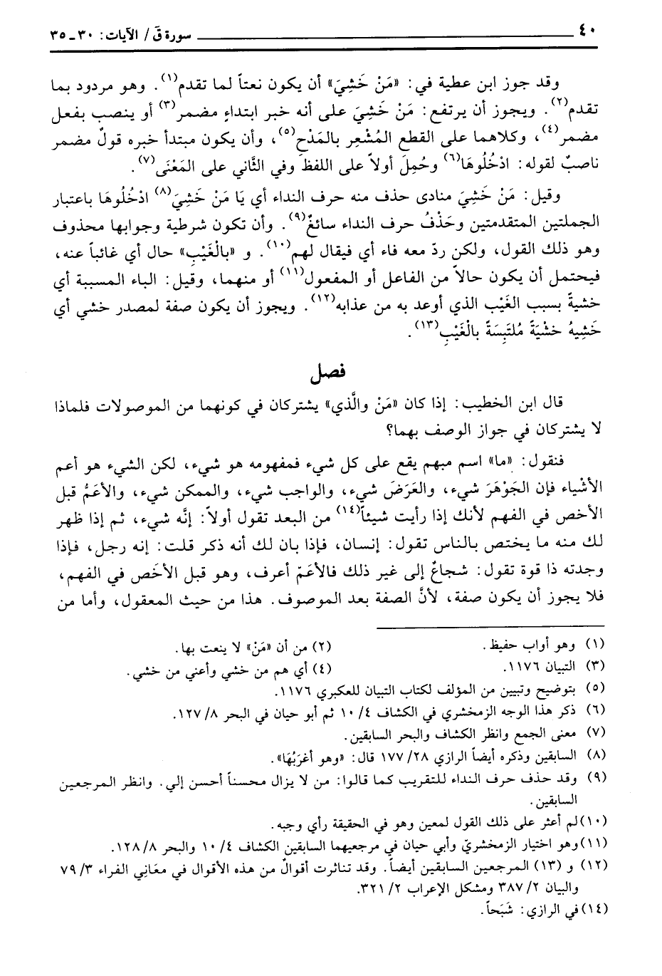 وقد جوز ابن عطية في: «مَنْ خَشِيَ» أن يكون نعتاً لما تقدم. وهو مردود بما تقدم. ويجوز أن يرتفع: مَنْ خَشِيَ على أنه خبر ابتداءٍ مضمر أو ينصب بفعل مضمر، وكلاهما على القطعِ المُشْعِر بالمَدْحِ، وأن يكون مبتدأ خبره قولٌ مضمر ناصبٌ لقوله: ادْخُلُوها وحُمِلَ أولاً على اللفظ وفي الثَّاني على المَعْنَى.