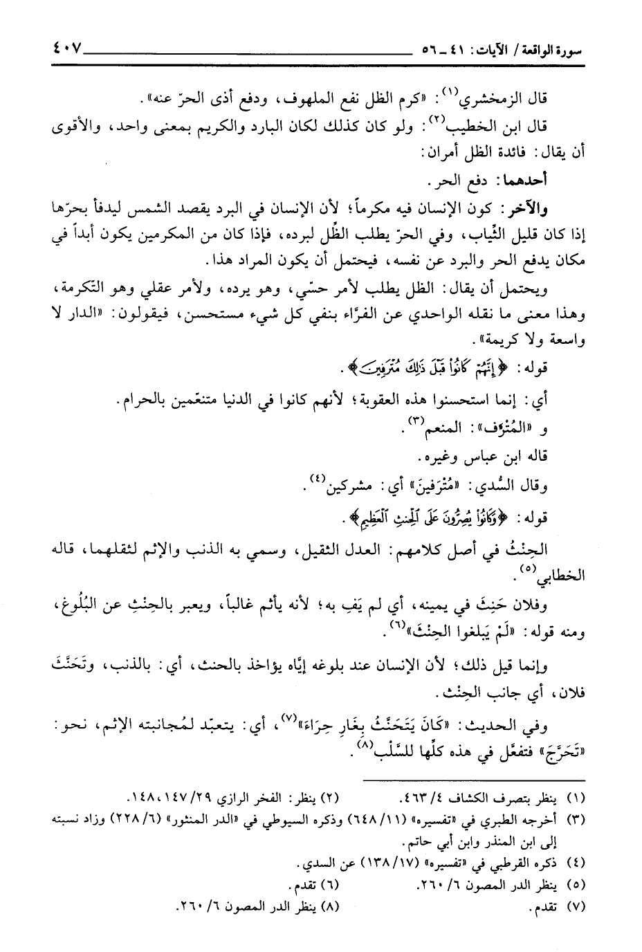 قوله: {إِنَّهُمْ كَانُواْ قَبْلَ ذَلِكَ مُتْرَفِينَ} .