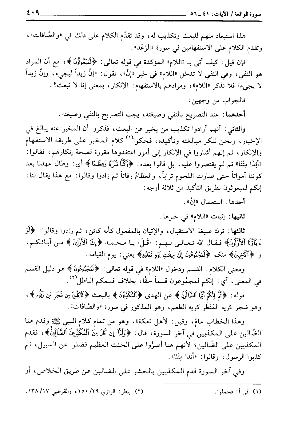 ومعنى الكلام: القسم ودخول «اللام» في قوله تعالى: {لَمَجْمُوعُونَ} هو دليل القسم في المعنى، أي: إنكم لمجمُوعون قسماً حقًّا، بخلاف قسمكم الباطل.