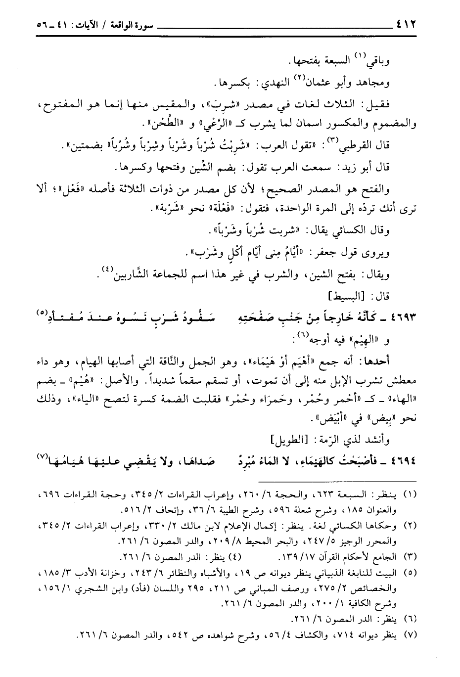 فقيل: الثلاث لغات في مصدر» شرِبَ «، والمقيس منها إنما هو المفتوح، والمضموم والمكسور اسمان لما يشرب ك» الرَّعْي «و» الطَّحْن «.