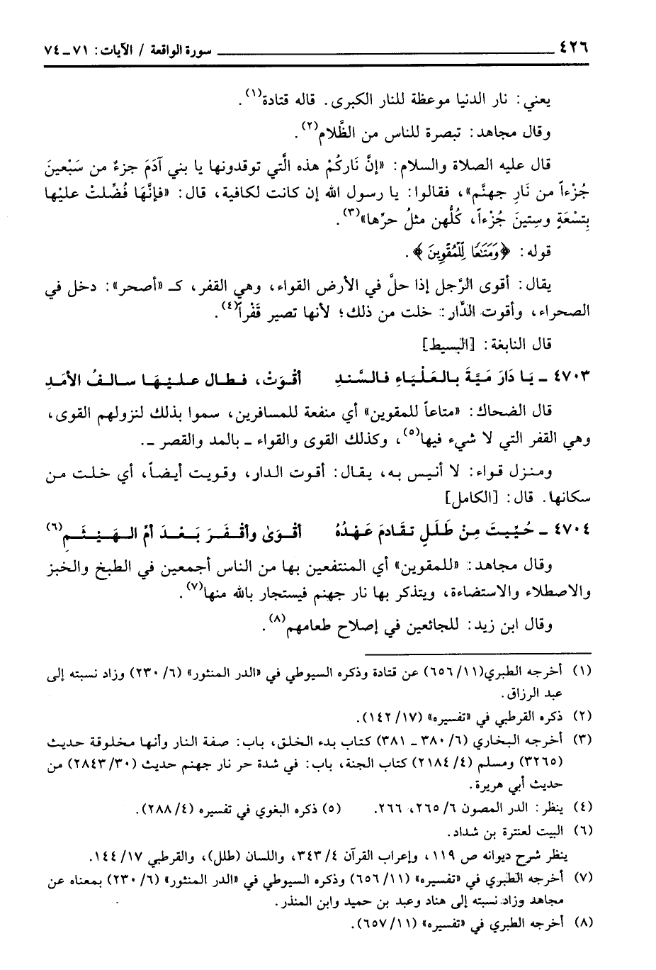 وقال مجاهد: «للمقوين» أي المنتفعين بها من الناس أجمعين في الطبخ والخبز والاصطلاء والاستضاءة، ويتذكر بها نار جهنم فيستجار بالله منها.