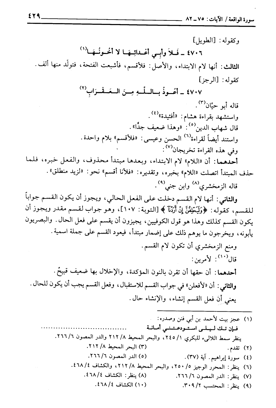 4706 - فَلاَ وأبِي أعْدائِهَا لا أخُونُهَا ... الثالث: أنها لام الابتداء، والأصل: فلأقسم، فأشبعت الفتحة، فتولّد منها ألف.