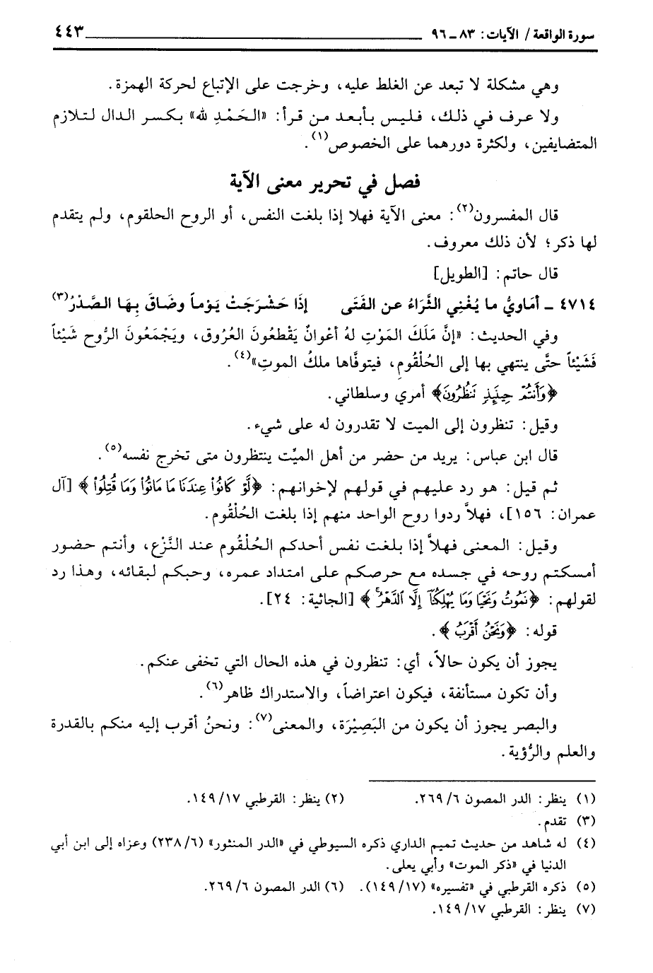 قال المفسرون: معنى الآية فهلا إذا بلغت النفس، أو الروح الحلقوم، ولم يتقدم لها ذكر؛ لأن ذلك معروف.