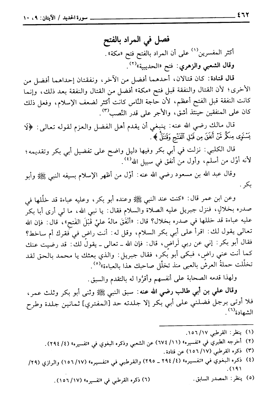 قال الكلبي: نزلت في أبي بكر وفيها دليل واضح على تفضيل أبي بكر وتقديمه؛ لأنه أوَّل من أسلم، وأول من أنفق في سبيل الله.