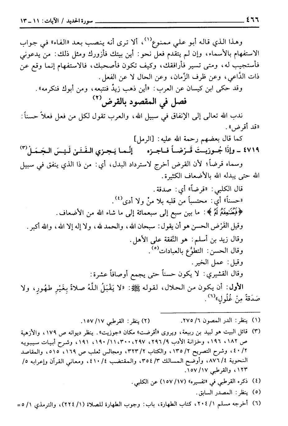 وقيل القَرْض الحسن هو أن يقول: سبحان الله، والحمد لله، ولا إله إلا الله، والله أكبر.