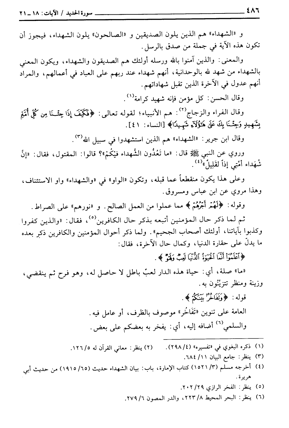 وقال ابن جرير: «الشهداء» هم الذين استشهدوا في سبيل الله.